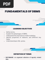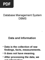 A DBMS is used to create and maintain a database A database is composed of a group of interrelated tables A file is a group of related records; a file is also called a table in the physical database A record is a group of related fields regarding one specific entity; a record is also called a row A record is considered unnormalized if it contains repeating groups A record is in first-normal form (1NF) if no repeating groups exist and it has a primary key Second-normal form (2NF) is achieved if the record is in 1NF and has no partial dependencies After a record is in 2NF and all transitive dependencies have been removed, then it is in third-normal form (3NF), which is generally sufficient for most databases
