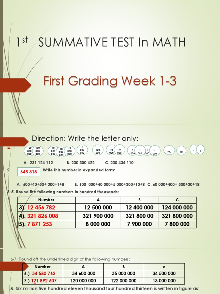 3). 12 456 782 12 500 000 12 400 000 124 000 000