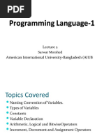 • printf(“count = %d\n”, ++count); Increments count to 2 before printing 2