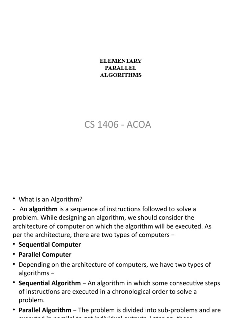 • Parallel Algorithm − The problem is divided into sub-problems and are