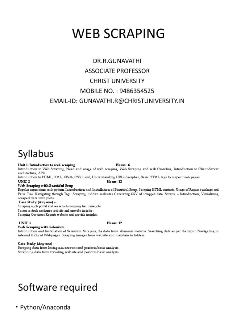 Unit 1: Introduction to web scraping Hours: 6