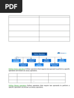 arithmetic; comparison; Logical; bit-wise and special operators.