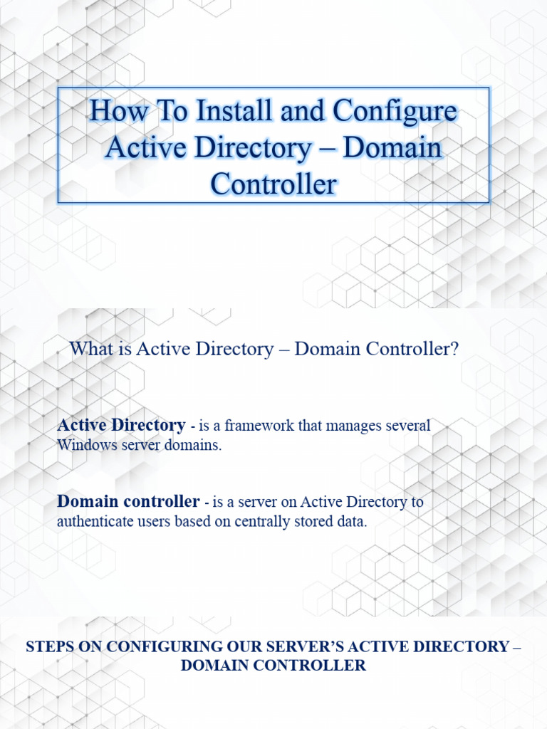 STEPS ON CONFIGURING OUR SERVER’S ACTIVE DIRECTORY –