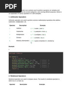 1. Arithmetic Operators: Arithmetic operators are used to perform common