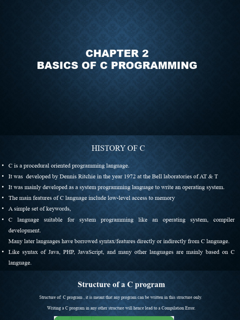 Many later languages have borrowed syntax/features directly or indirectly from C language.