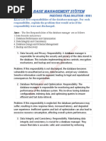 • Database administrator’s responsibilities include: