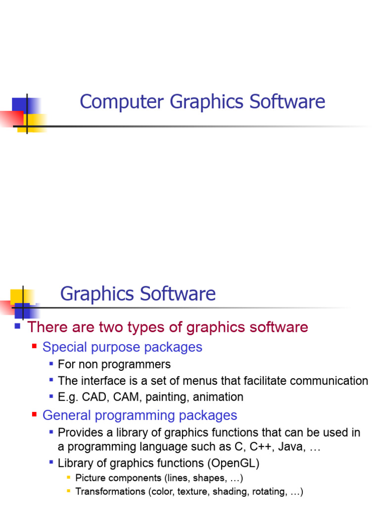 • glutDisplayMode(GLUT_SINGLE|GLUT_RGB)