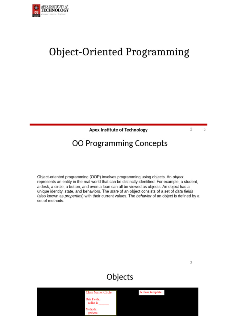 a desk, a circle, a button, and even a loan can all be viewed as objects. An object has a