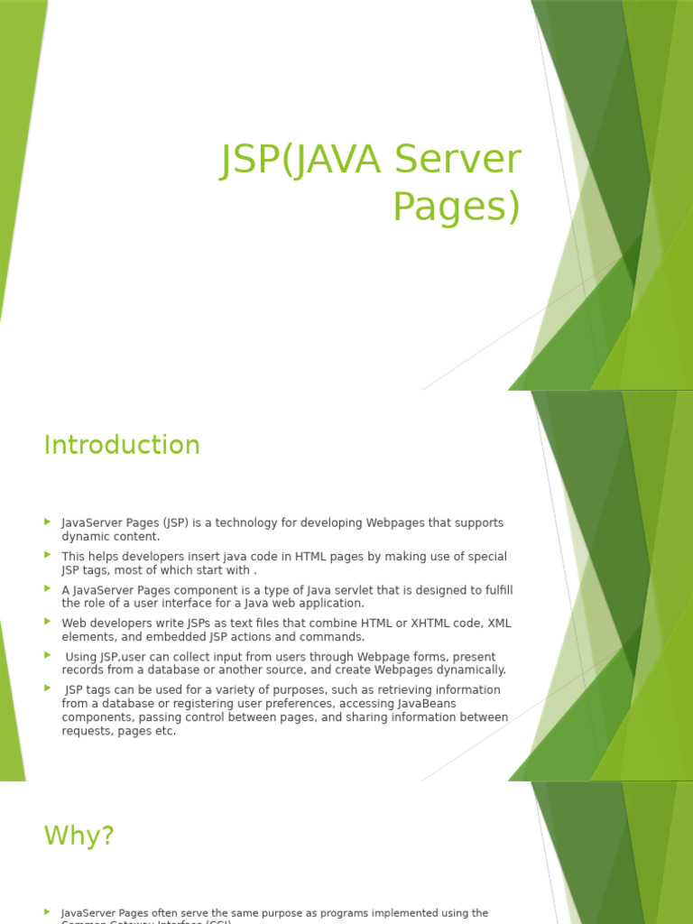 vs. Active Server Pages (ASP) The advantages of JSP are twofold.