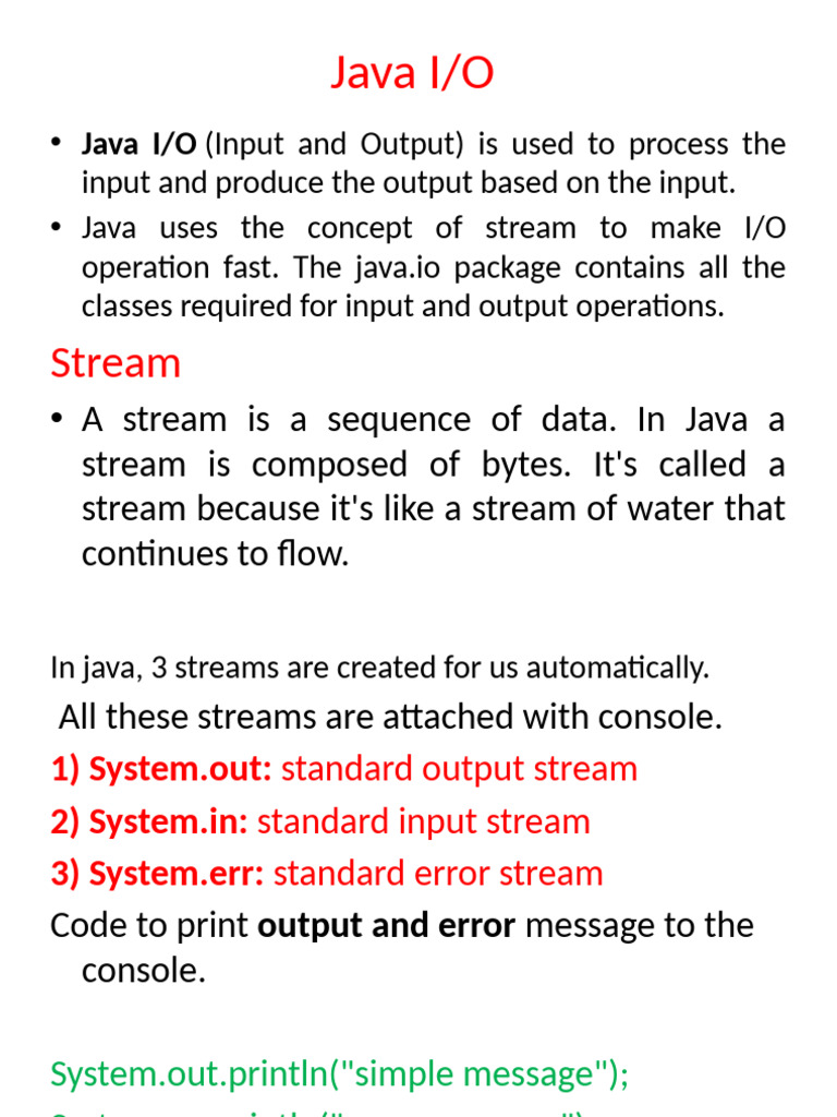 Java FileInputStream class obtains input bytes from a file.It is used for