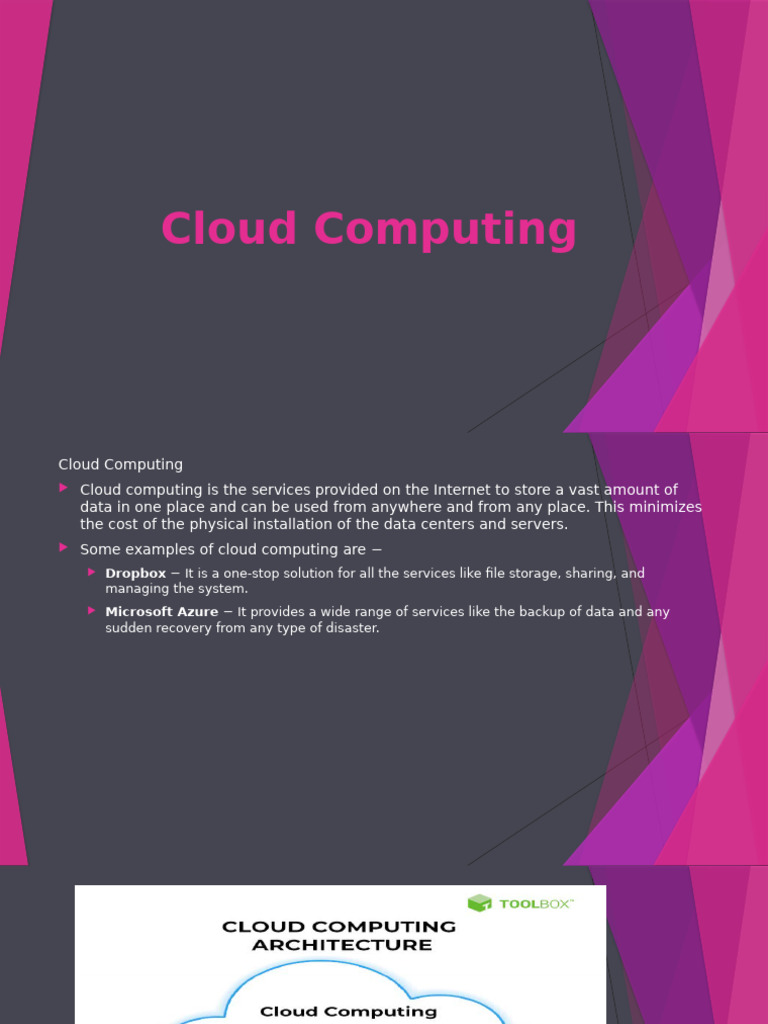 Cloud computing is the services provided on the Internet to store a vast amount of