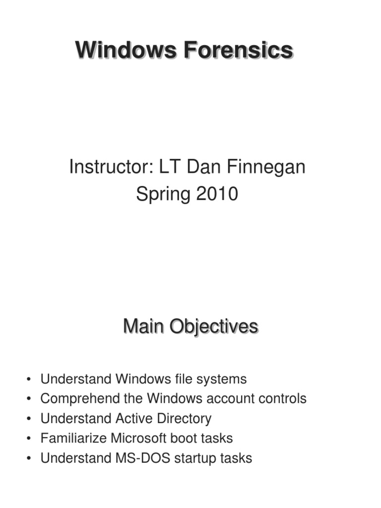 Understand Windows file systems Comprehend the Windows account controls Understand Active Directory Familiarize Microsoft boot tasks Understand MS-DOS startup tasks