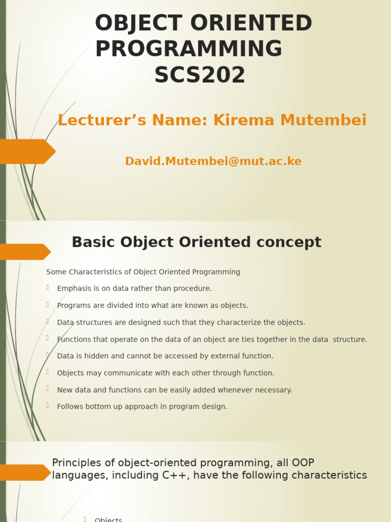 Some Characteristics of Object Oriented Programming