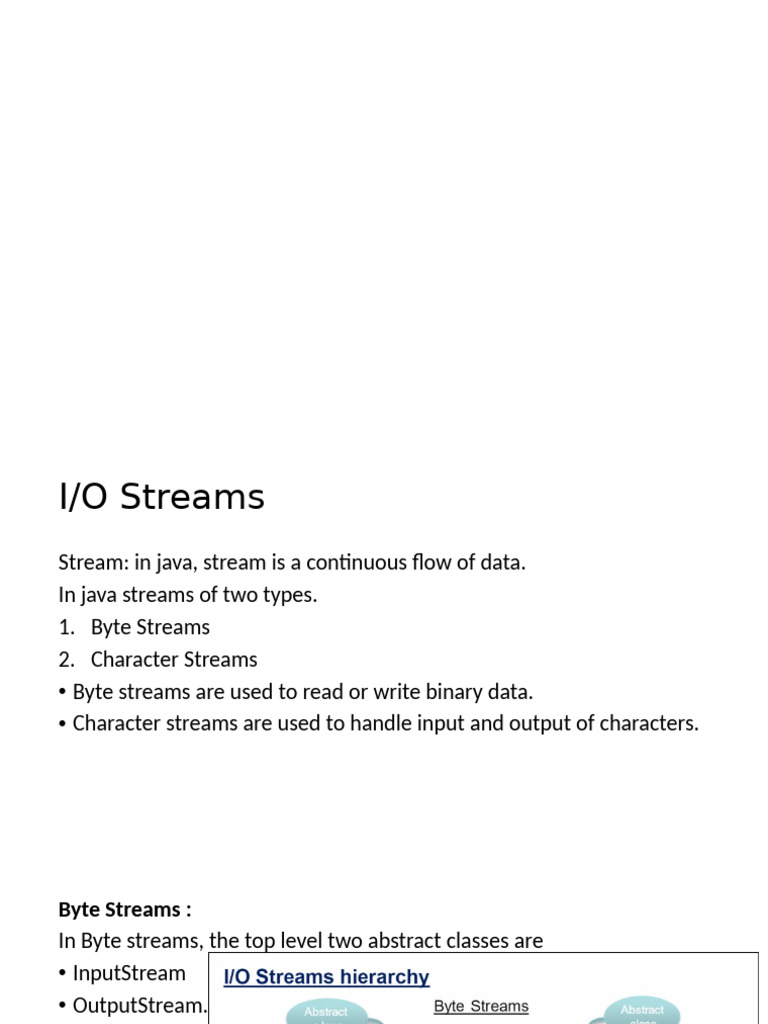 • It is used for reading byte-oriented data (streams of raw bytes) such