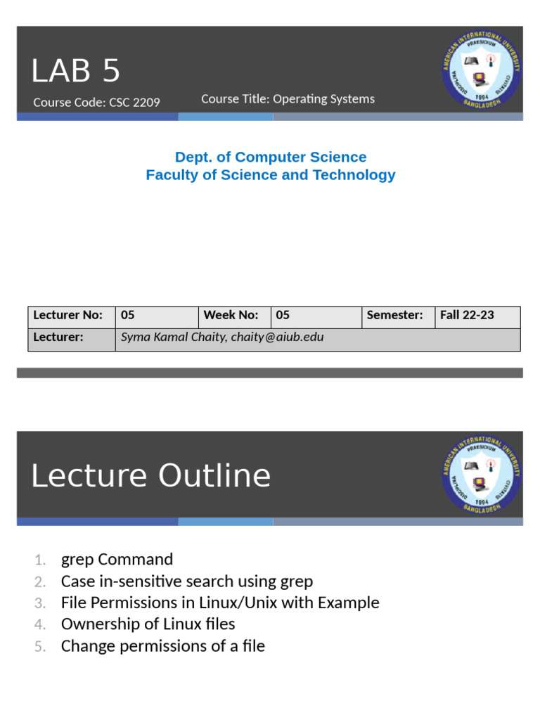Lecturer: Syma Kamal Chaity, chaity@aiub.edu