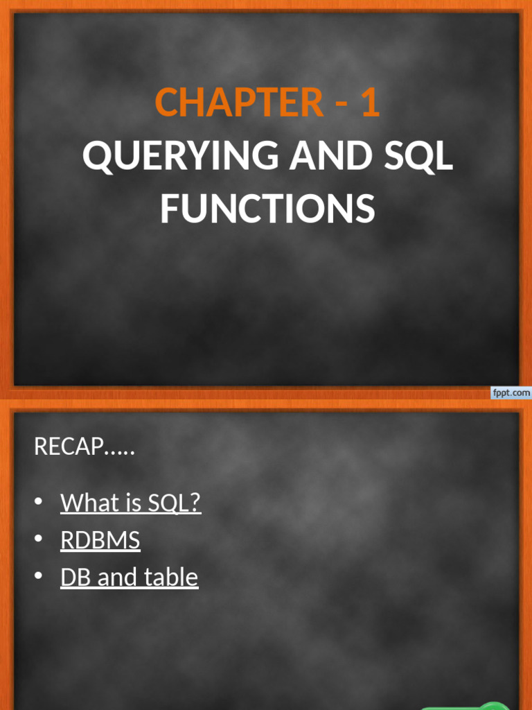 • Data must be stored in tabular form in DB file(in the form of rows and