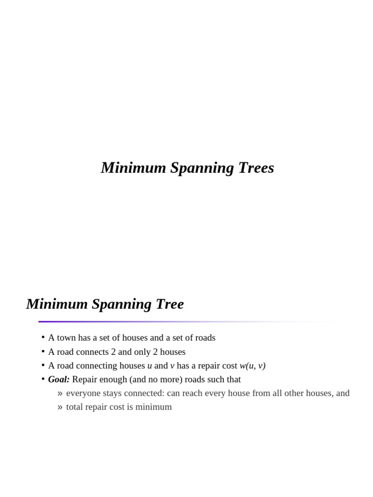 • w(T ) = ∑ w(u, v) is minimized ( u ,v )∈T
