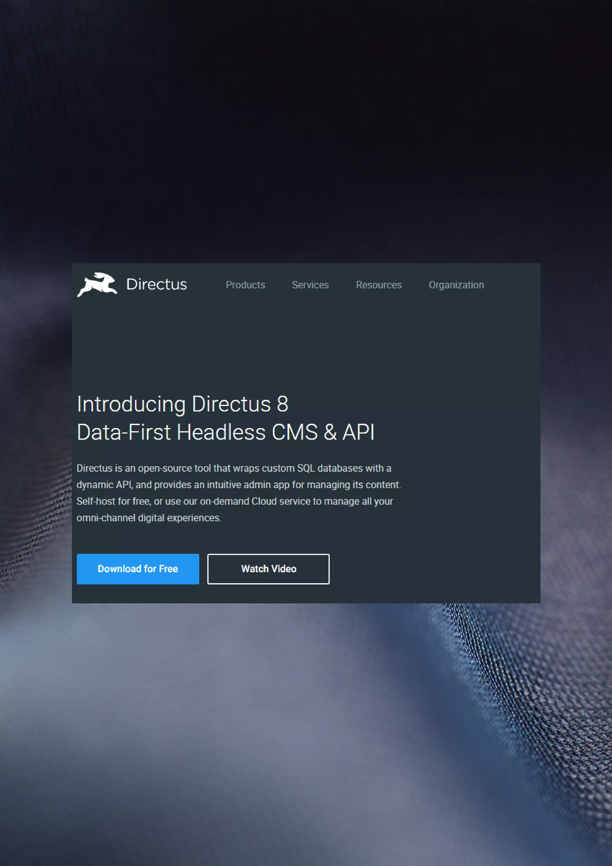 Another lightweight andstraightforward CMS is Directus, which is so good and famous among the developers that it gains 6.9k stars on GitHub. The feature that makes this project stand apart is the database synchronization. It stores your data in the form of the SQL database, and hence your app/website is always updated with every change you make. Directus has got multi-lingual support. Official Website: https://directus.io/ GitHub Link: https://github.com/directus/direct us 12. Directus