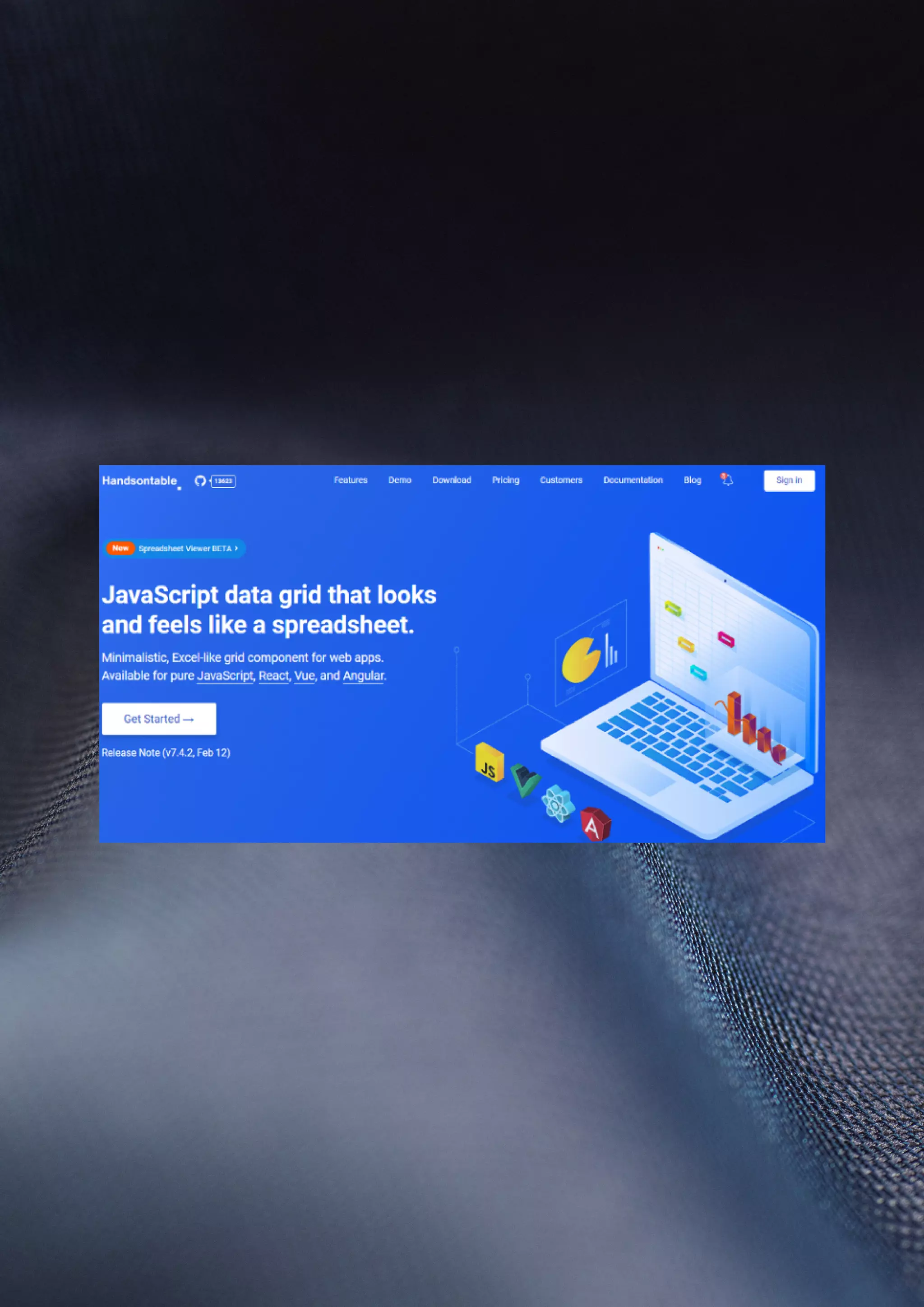 Using this tool, you can create your custom data grid components along with the standard operations like- read, create, delete, and update. Handsonstable has got a spreadsheet look, and you can filter or sort your records. There are 13.6k stars on GitHub for this tool. Official Website: https://handsontable.com/ GitHub Link: https://github.com/handsontable/ handsontable 16. Handsontable
