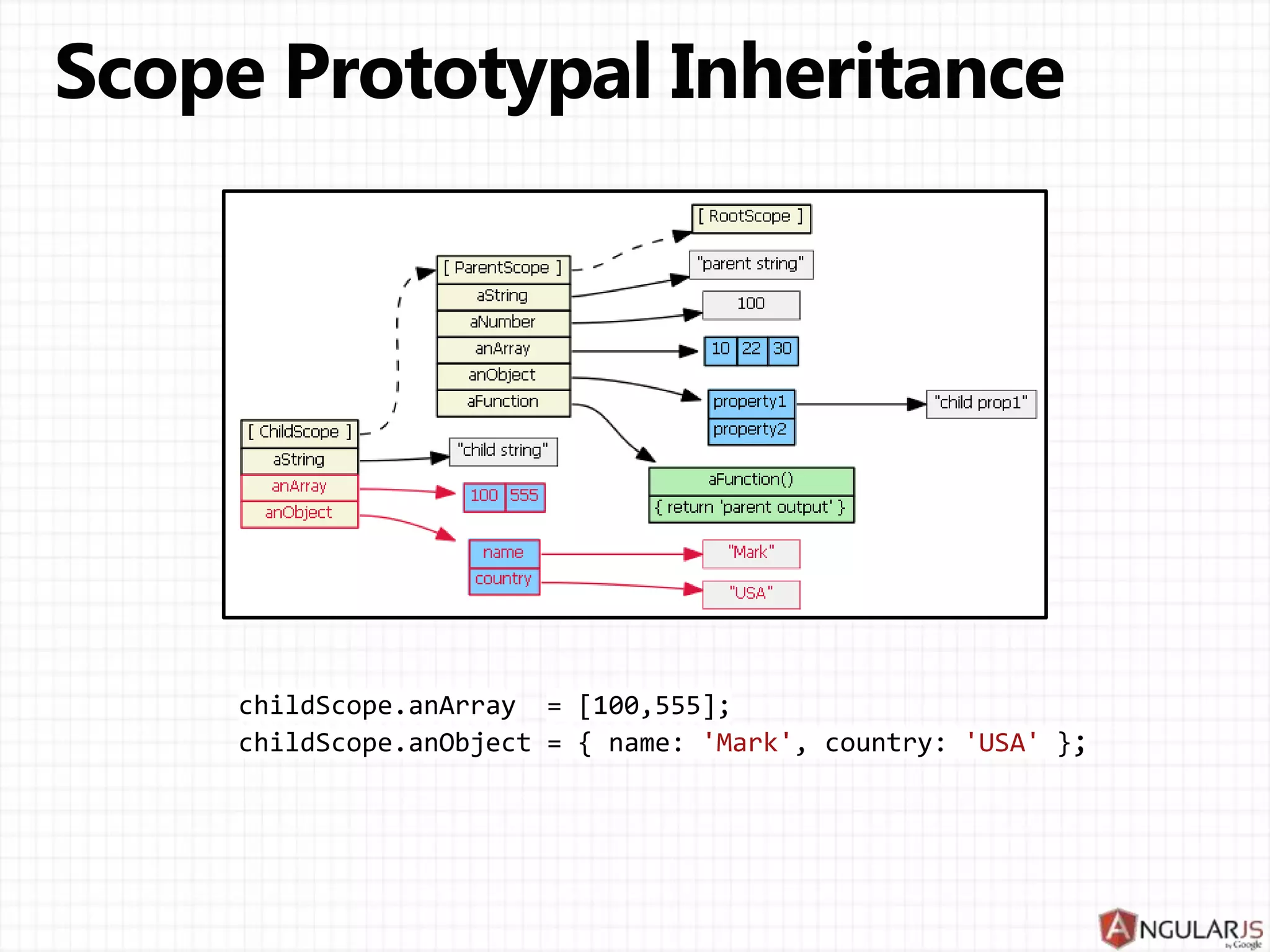 This document discusses AngularJS directives and scopes. It provides examples of: - Defining directives with isolate scopes that bind to parent scope properties using '@' for interpolation, '=' for two-way binding, and '&' for function execution. - How child/isolate scopes inherit from parent scopes but can overwrite properties, while objects and arrays are shared by reference between parent and child. - Using $parent to reference properties on the parent scope from within an isolate/child scope. - The compilation process where directives are sorted and linked. So in summary, it covers the key concepts of isolate scopes, prototypal inheritance and how directives are compiled in AngularJS.