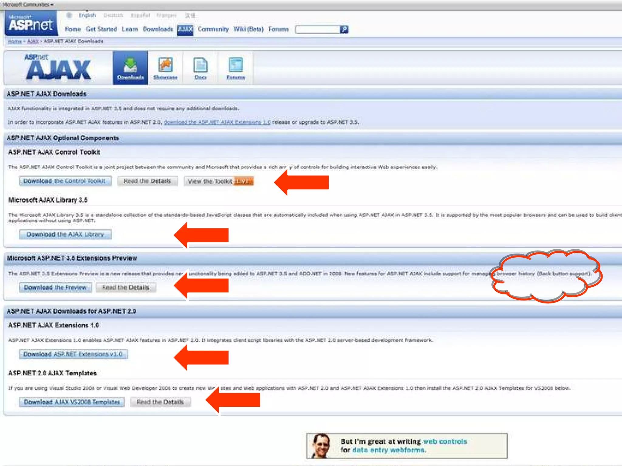 This document provides an overview of ASP.NET AJAX with Visual Studio 2008, including: 1) Benefits of using ASP.NET AJAX such as asynchronous JavaScript calls that reduce page loads and improve the user experience. 2) Key concepts of ASP.NET AJAX including UpdatePanels, triggers, and client-side JavaScript libraries. 3) Differences between client-centric and server-centric programming models in ASP.NET AJAX.