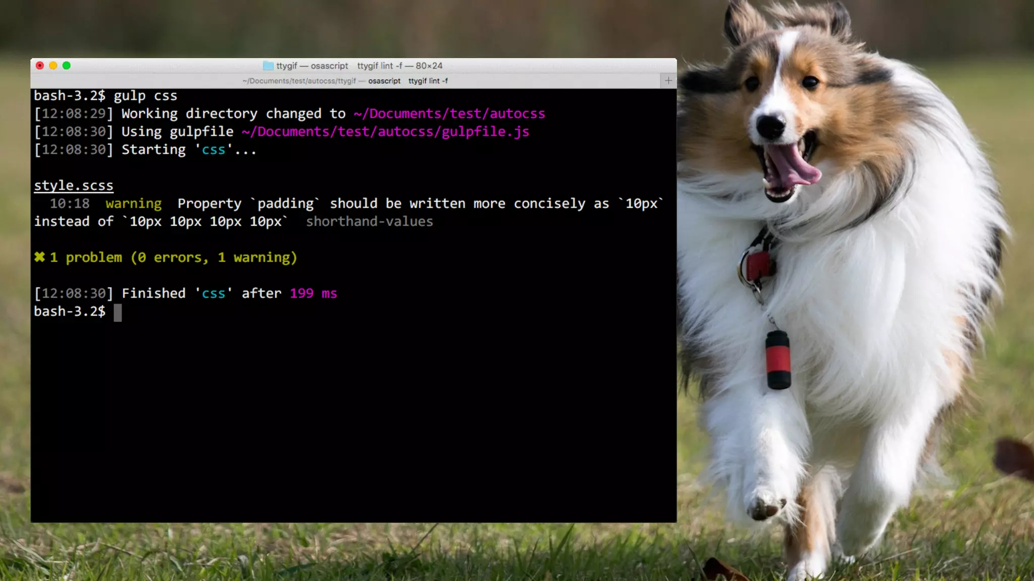 var gulp =require('gulp'); var sass = require('gulp-sass'); var sassLint = require('gulp-sass-lint'); var postcss = require('gulp-postcss'); var csso = require('gulp-csso'); gulp.task('default', function () { return gulp.watch('*.scss',['css']); }); var browsers = [ //'last 2 versions', //'ie >= 9', '> 3%' ]; gulp.task('css', function () { return gulp.src('*.scss') .pipe(sassLint()) .pipe(sassLint.format()) gulpfile.js