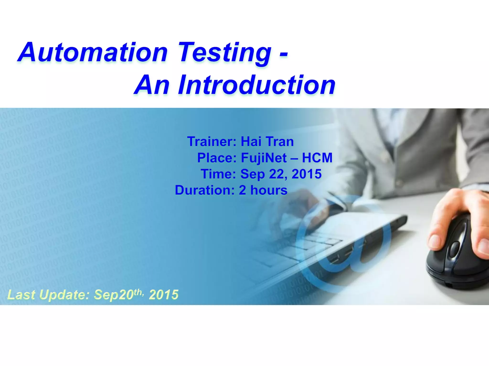 This document discusses automation testing and provides an overview of manual vs automation testing. It covers why automation testing is important, including allowing repetitive tests to run across multiple builds and reducing human error. Common automation tools like QTP and Selenium are mentioned. The history of automation from record and playback to modern keyword-driven approaches is summarized. Examples of building automation frameworks for QTP and Selenium are provided. In conclusion, the document promotes automation testing as important for the future.