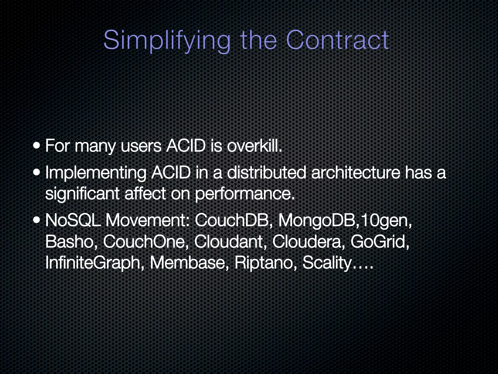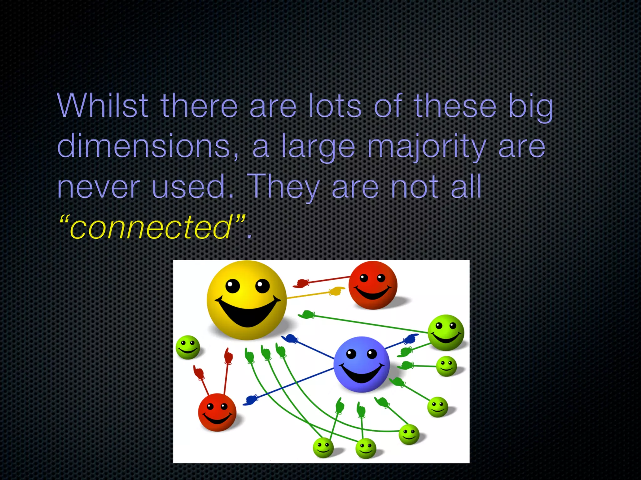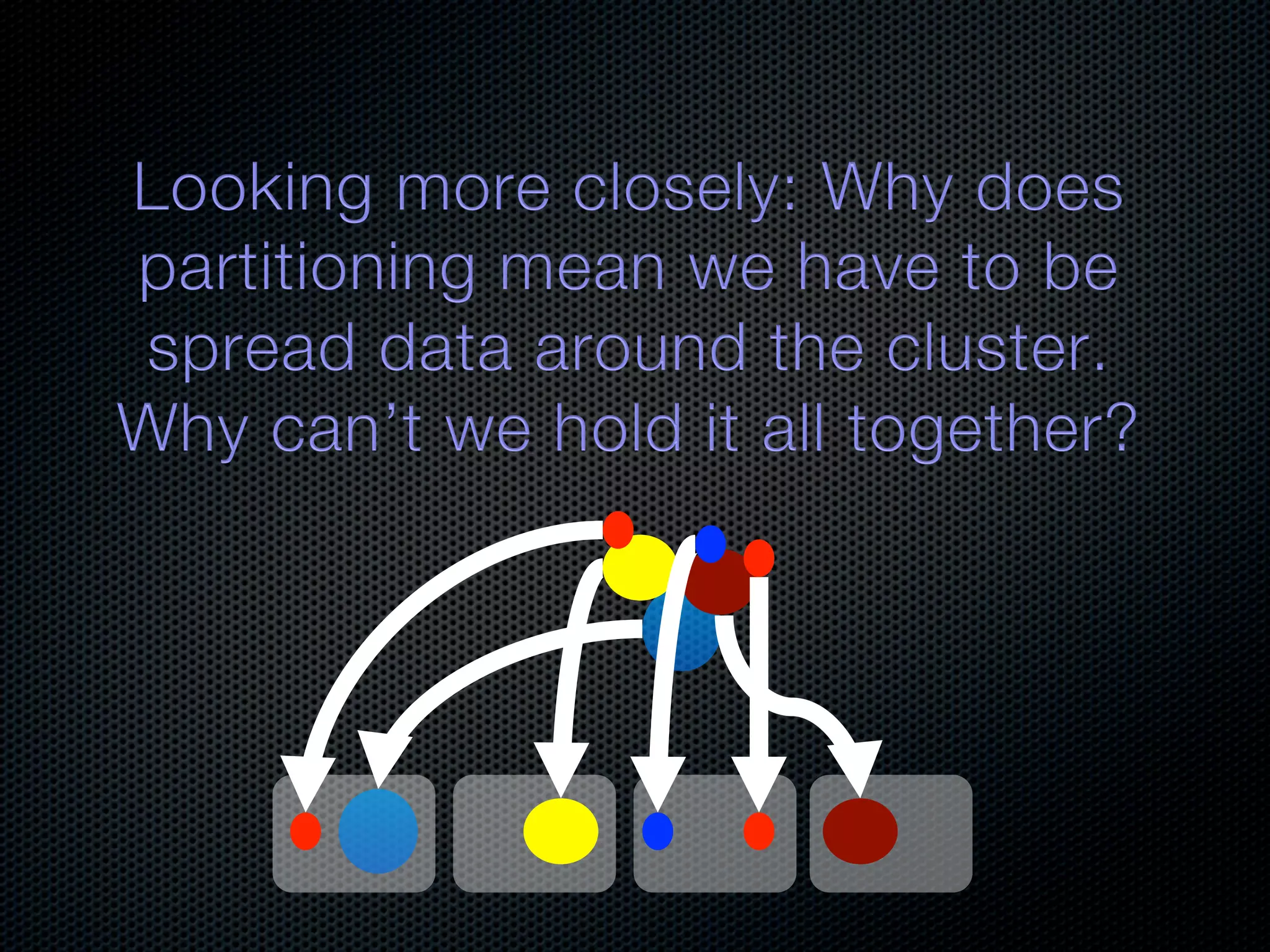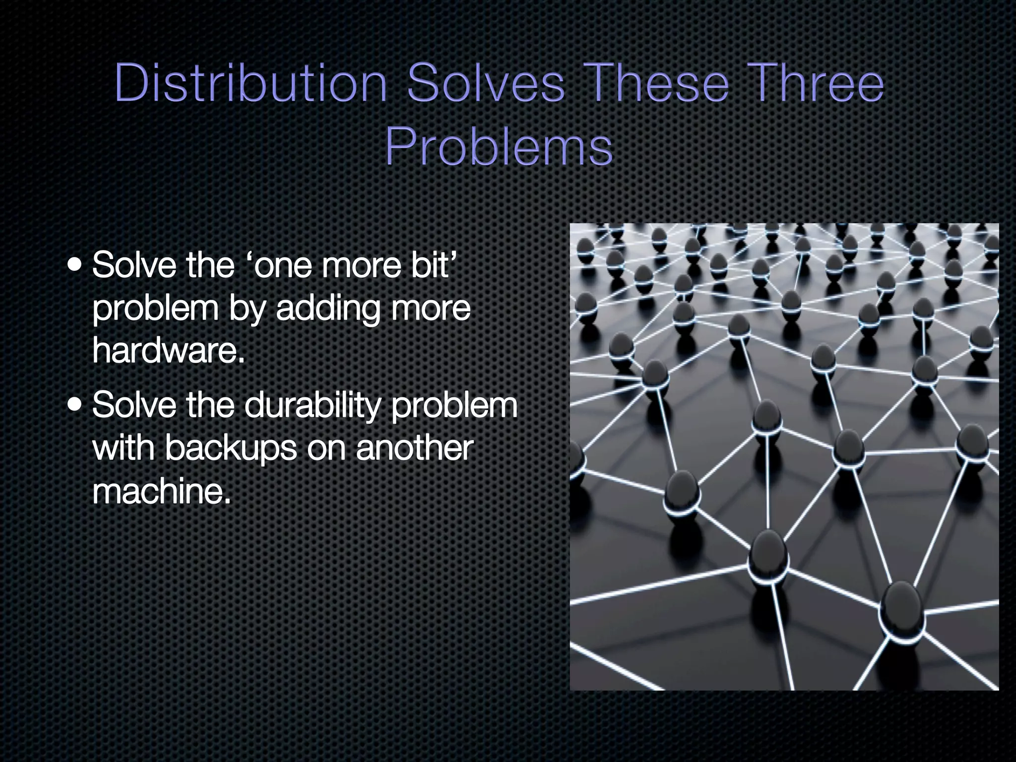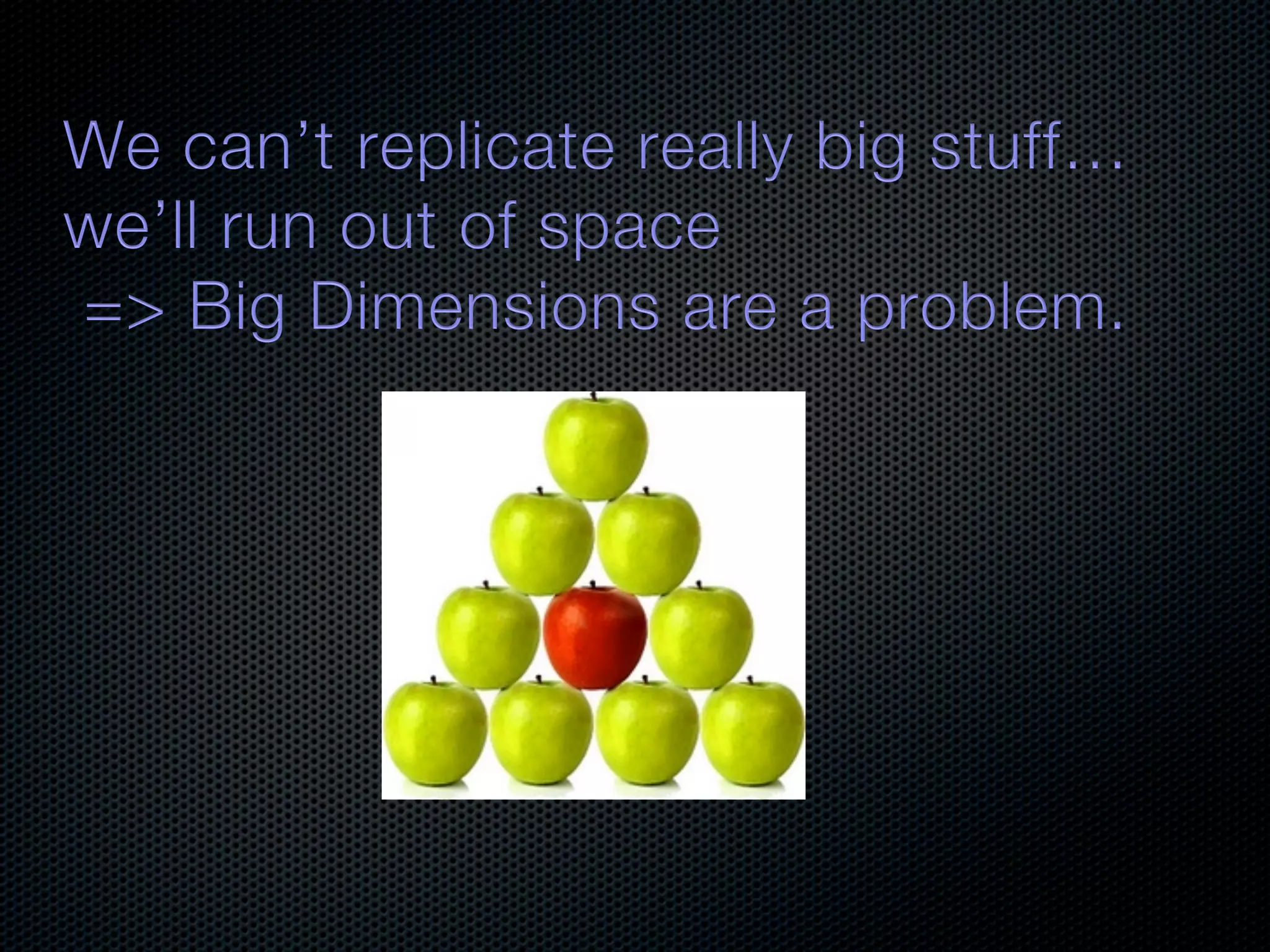 In-memory databases enhance performance but face challenges with data durability and complexity due to traditional disk-based architectures. The document discusses how techniques like partitioning and connected replication can alleviate issues related to joins across distributed systems while maintaining efficient data access. It emphasizes the use of snowflake schemas and caching strategies to optimize data processing in a multi-node environment.