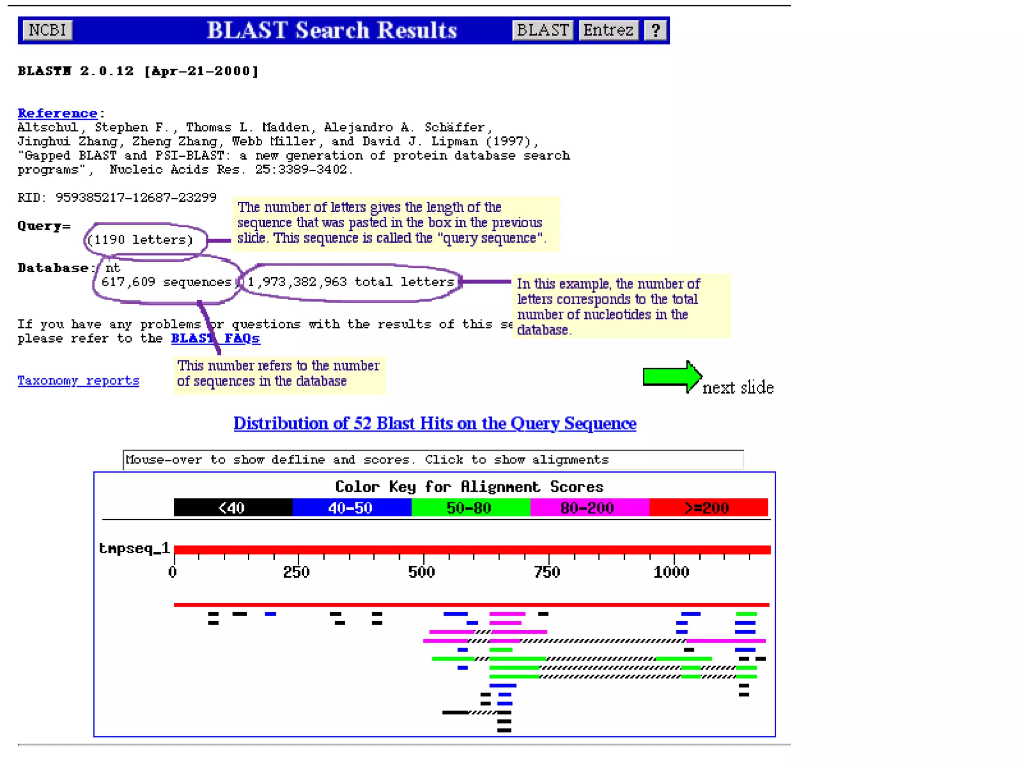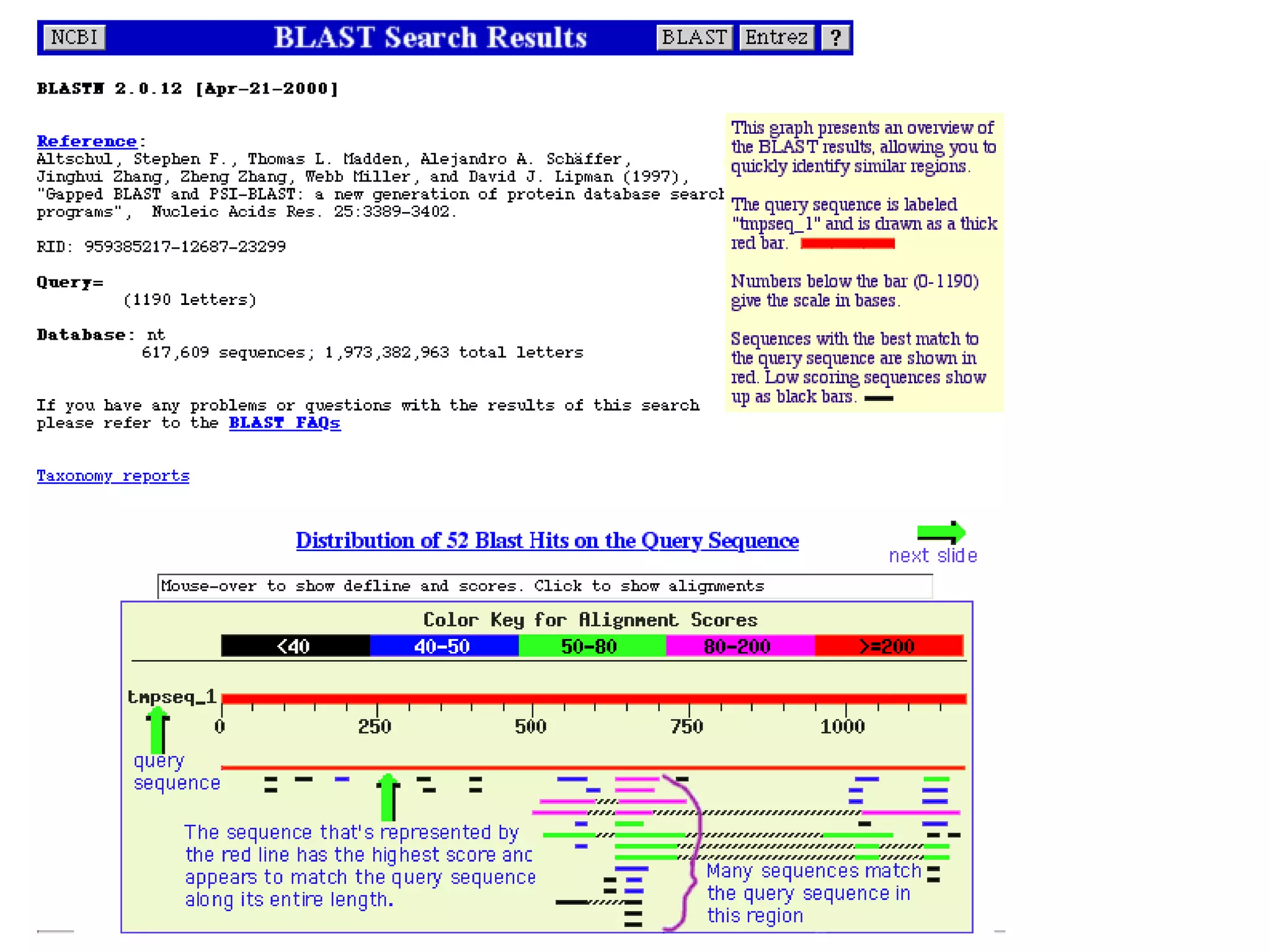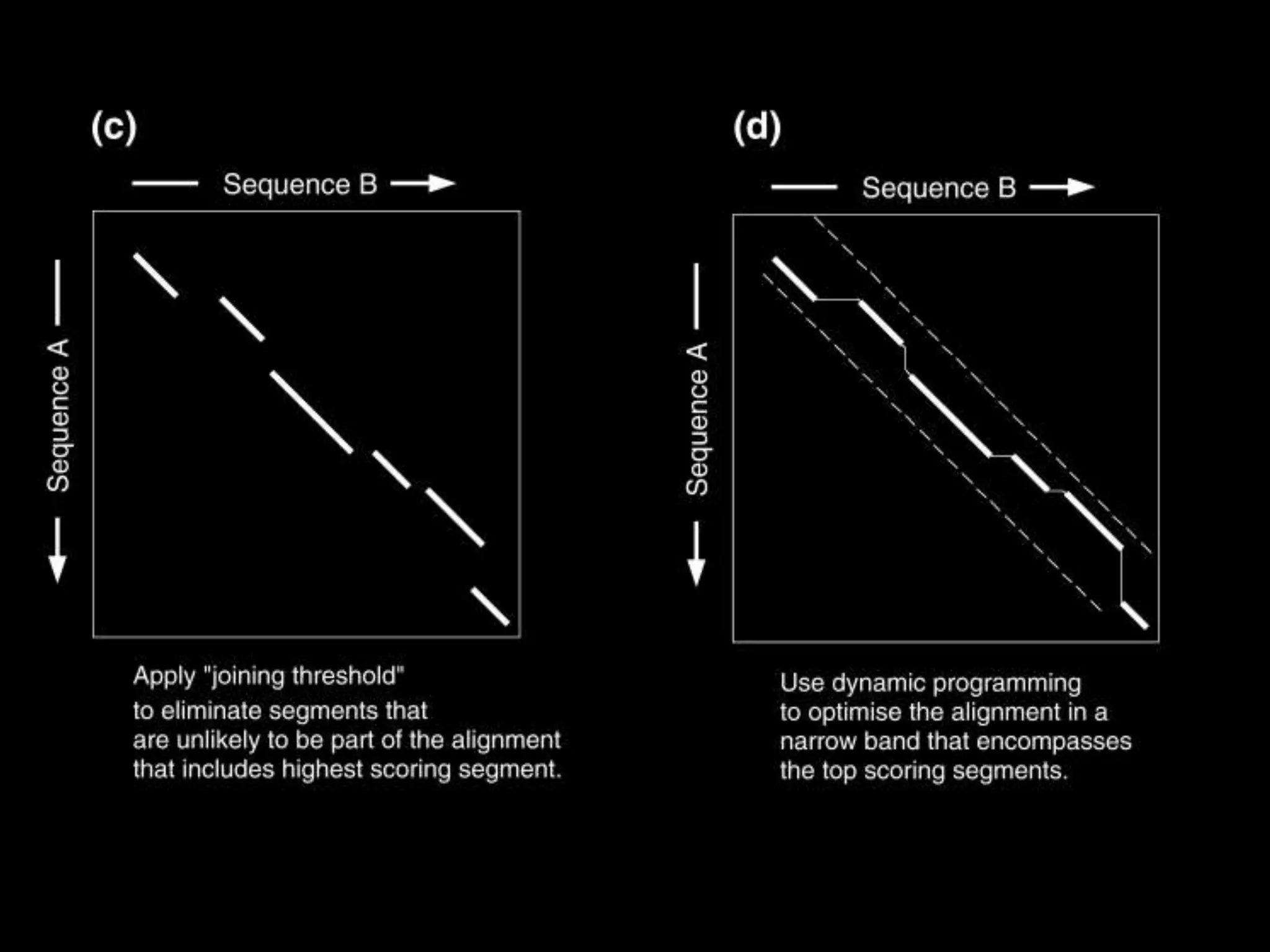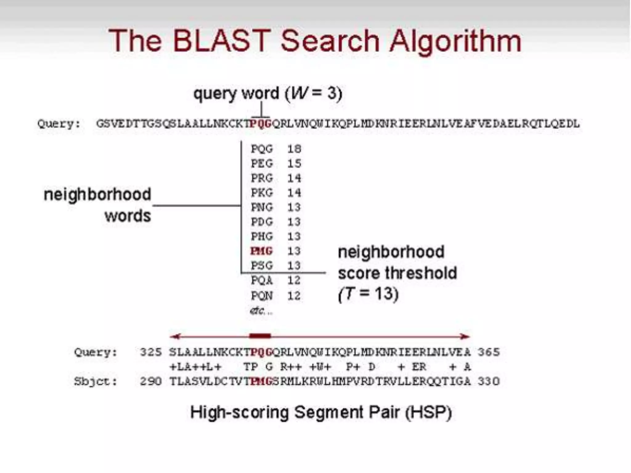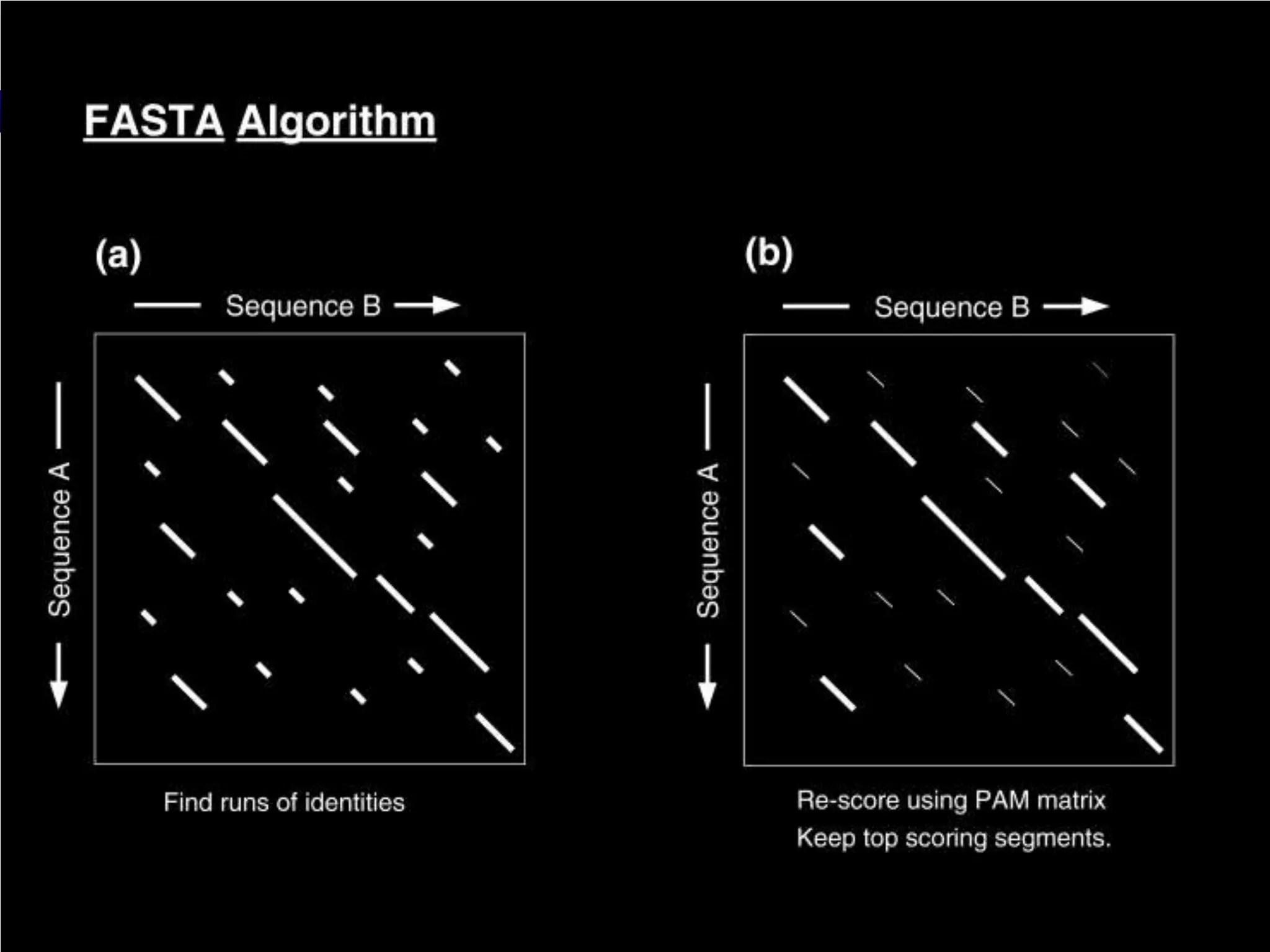 This document provides an overview of the bioinformatics tools BLAST and FASTA for database searching. It discusses how BLAST uses heuristics like rapid word lookup methods to skip comparing most database entries, making it extremely fast compared to dynamic programming methods. FASTA also uses heuristics like identifying short identical matches to focus alignments, but BLAST is now one order of magnitude faster than FASTA and two orders of magnitude faster than Smith-Waterman. The document provides details on how each tool works and their advantages and limitations.