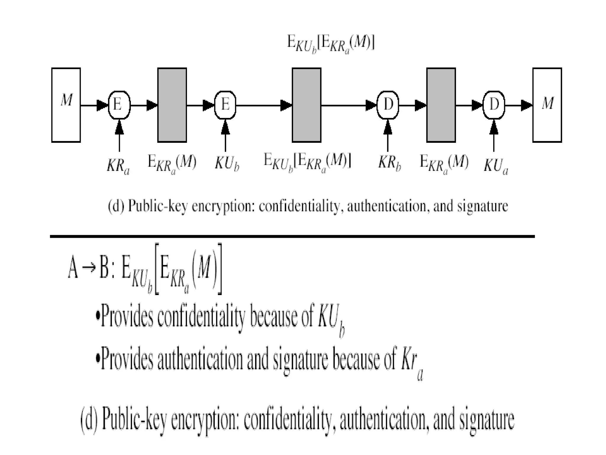Message Encryption ifpublic-key encryption is used: encryption provides no confidence of sender since anyone potentially knows public-key however if sender signs message using their private-key then encrypts with recipients public key have both secrecy and authentication again need to recognize corrupted messages but at cost of two public-key uses on message