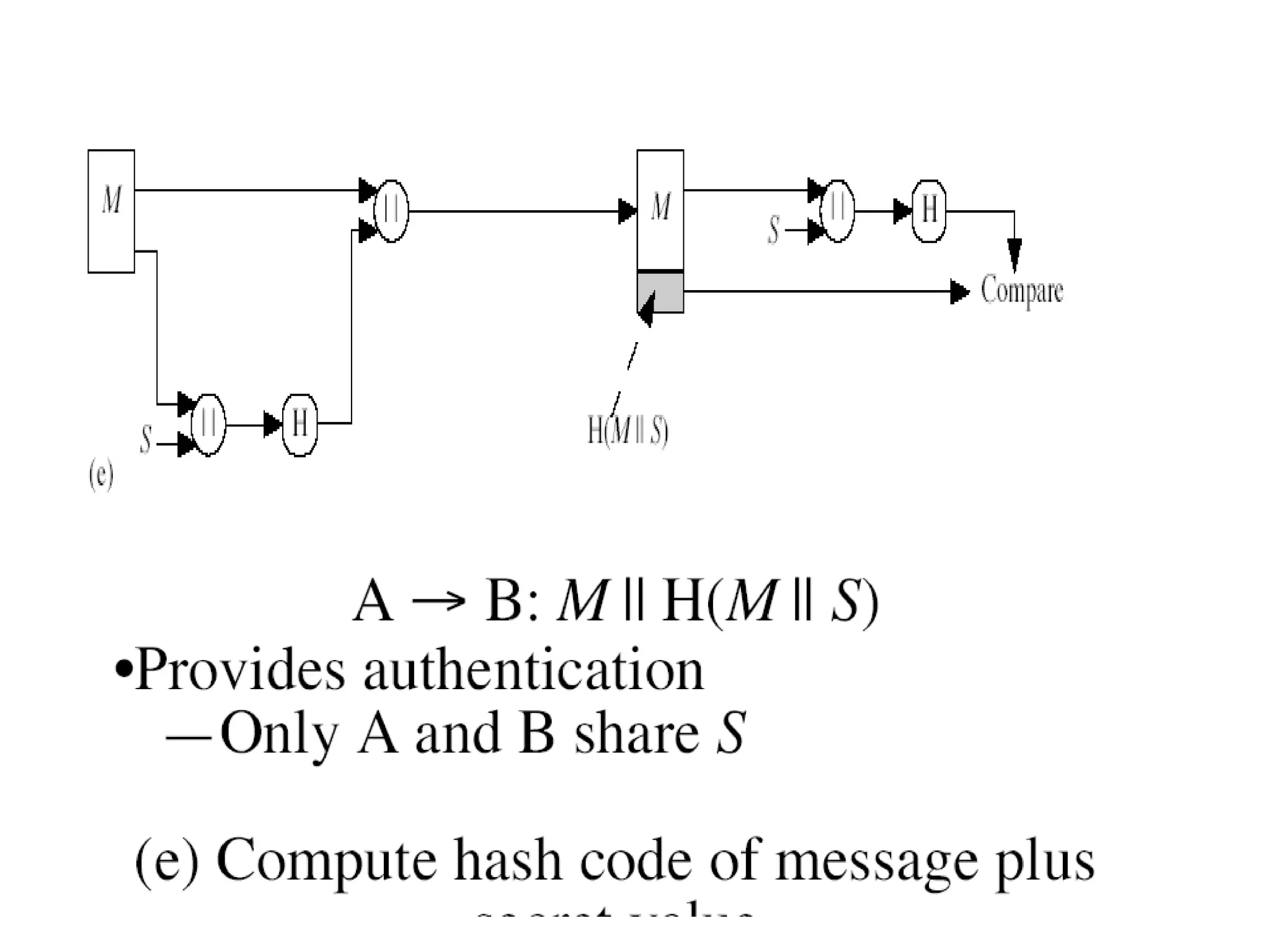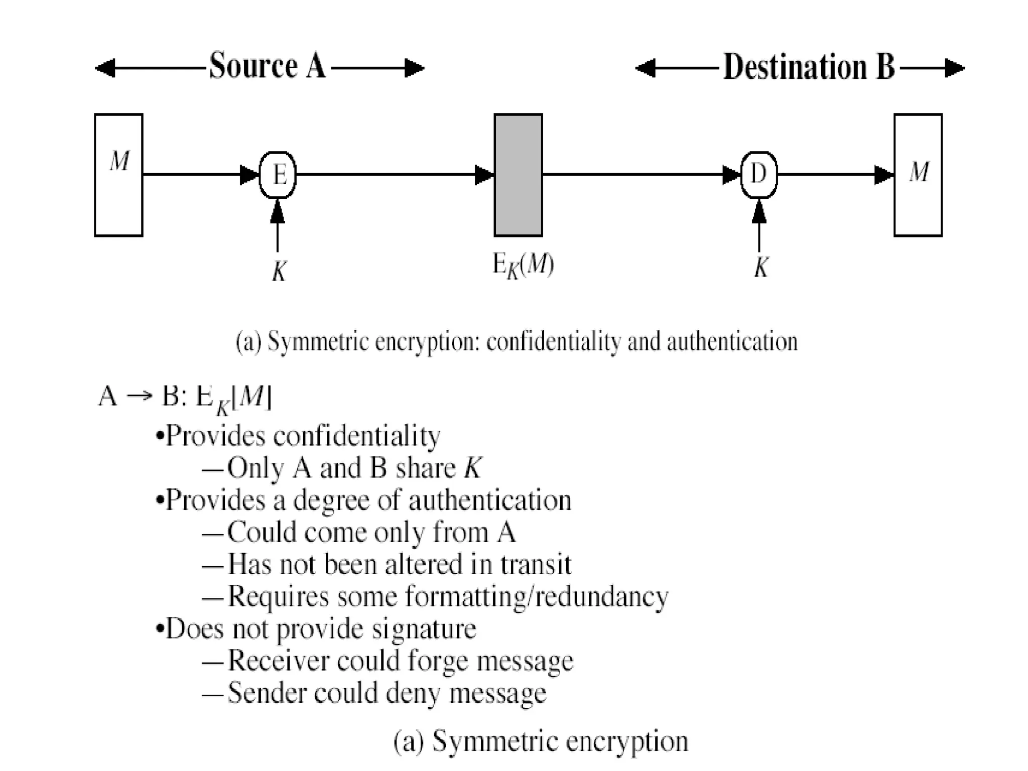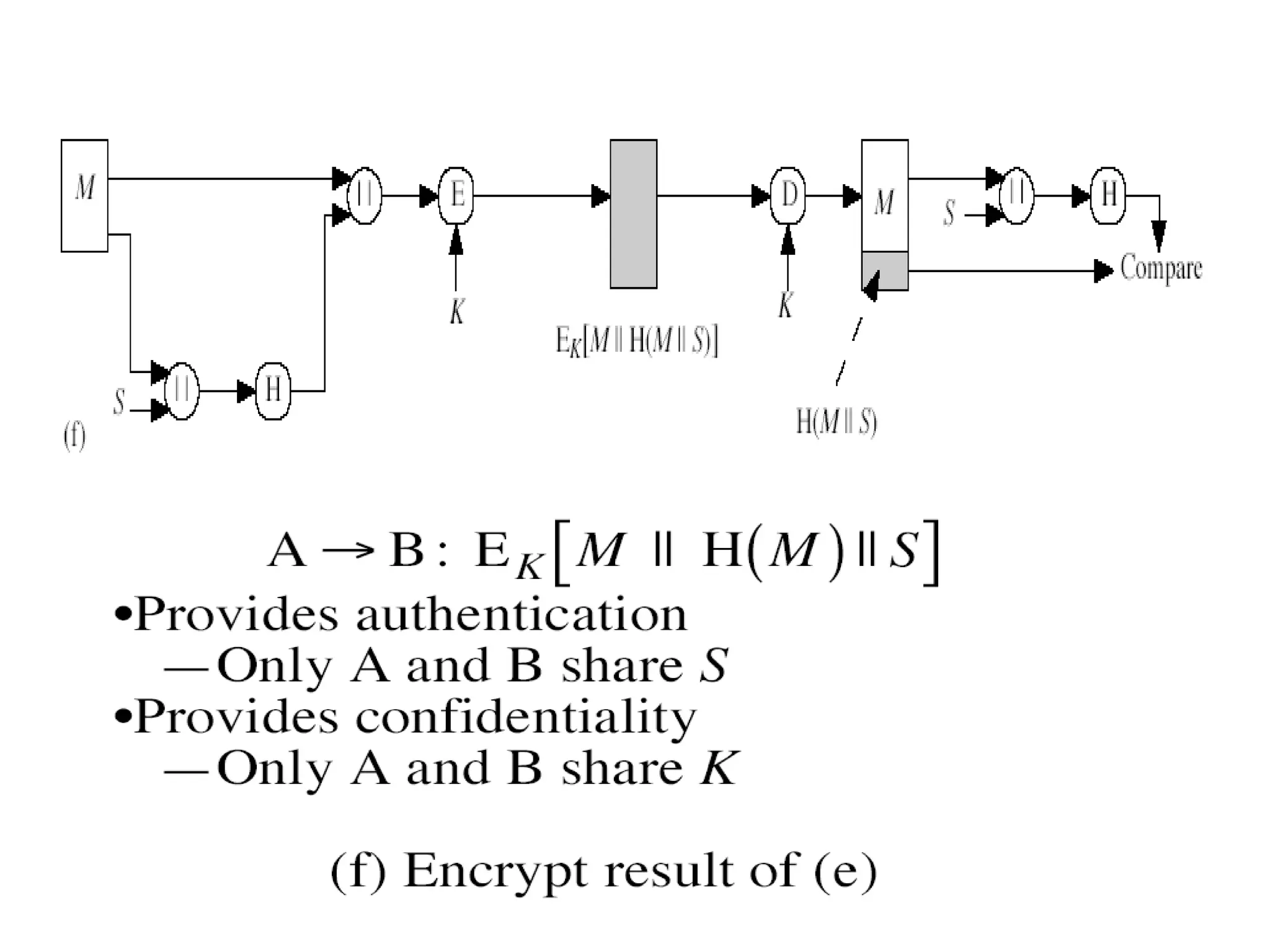 Message Encryption messageencryption by itself also provides a measure of authentication if symmetric encryption is used then: receiver know sender must have created it since only sender and receiver now key used know content cannot of been altered if message has suitable structure, redundancy or a checksum to detect any changes