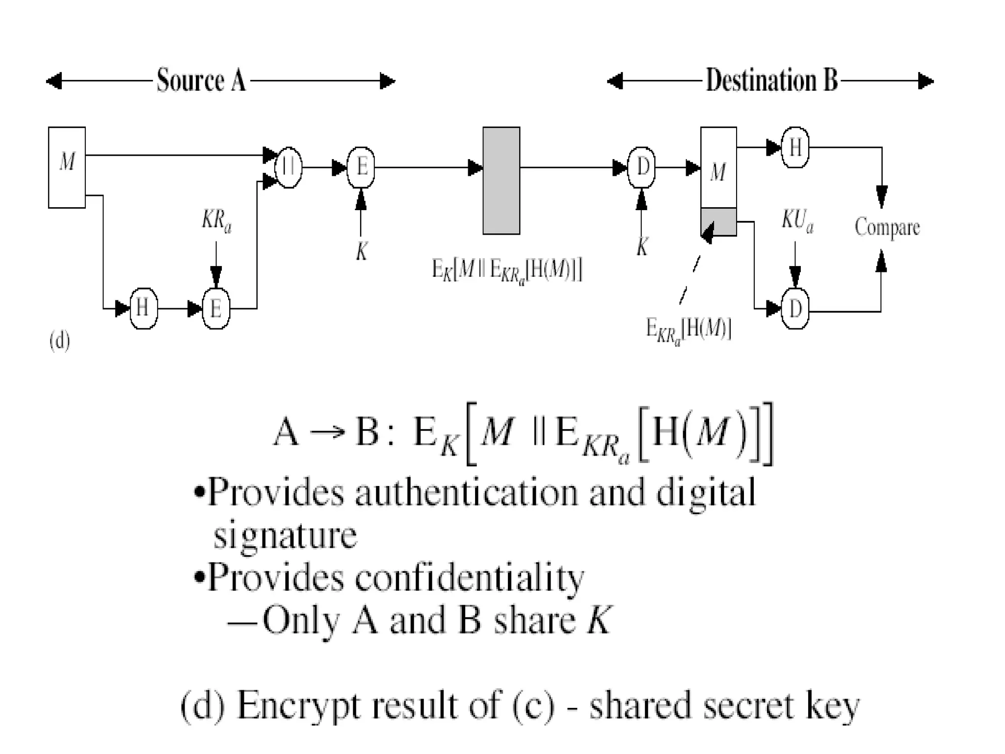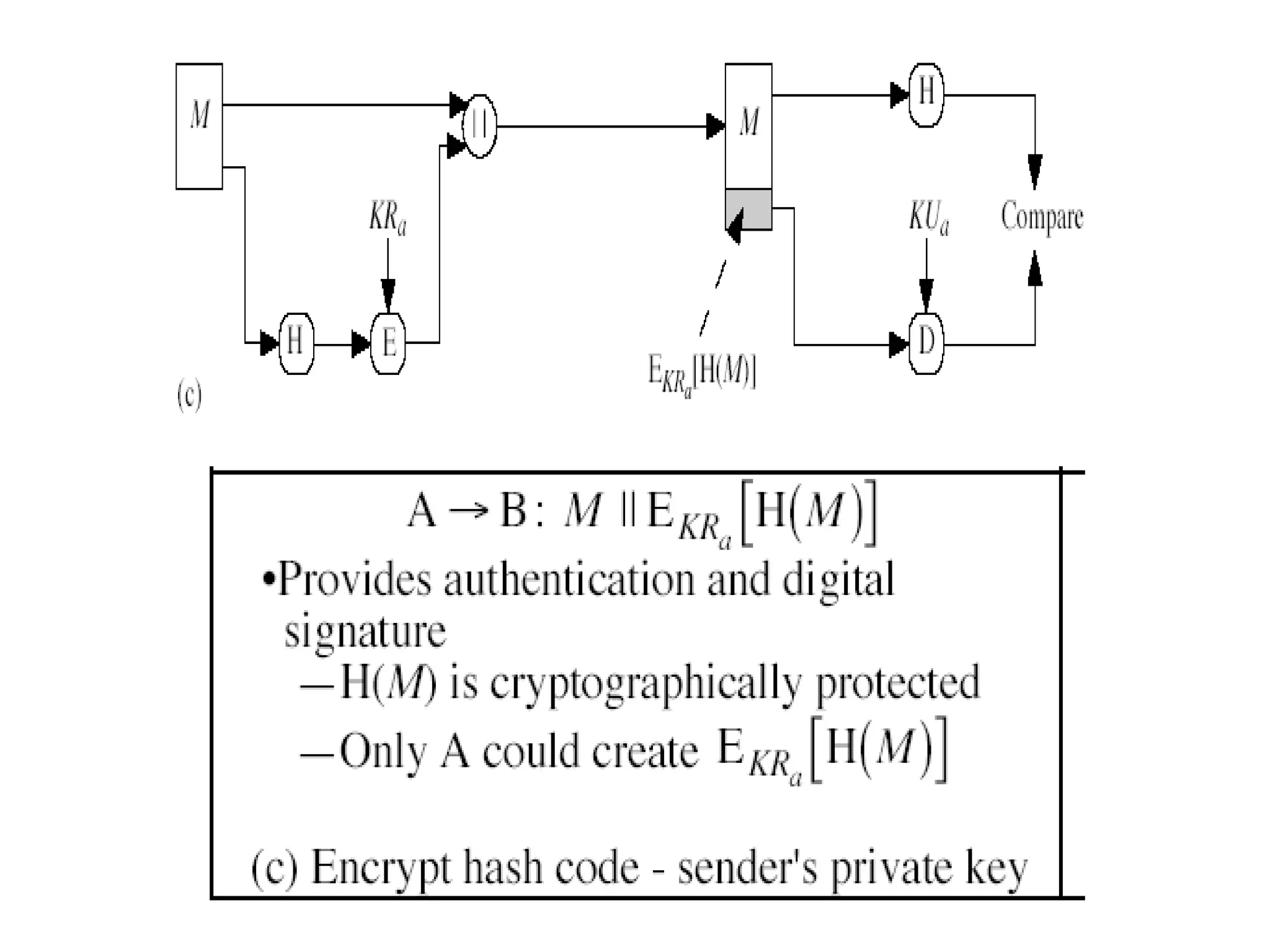 #3 The first two requirements belong in the realm of message confidentiality, and are handled using the encryption techniques already discussed. The remaining requirements belong in the realm of message authentication. At its core this addresses the issue of ensuring that a message comes from the alleged source and has not been altered. It may also address sequencing and timeliness. The use of a digital signature can also address issues of repudiation.