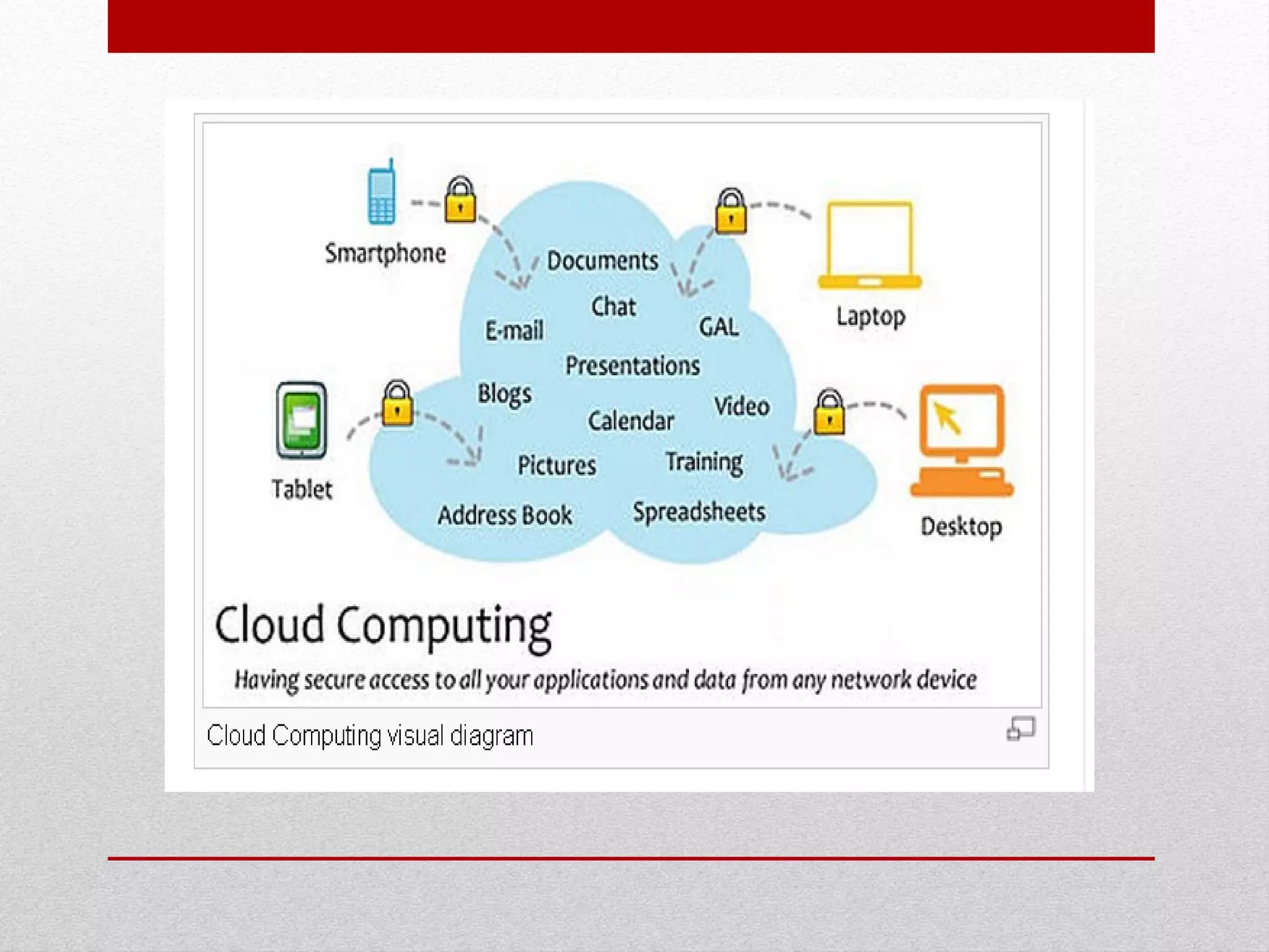Cloud computing refers to accessing software and data storage over the internet rather than locally. There are three main types of cloud services - Software as a Service (SaaS), Platform as a Service (PaaS), and Infrastructure as a Service (IaaS). SaaS provides end users access to online applications, PaaS provides developers platforms to build apps, and IaaS provides network architects computational resources like storage, servers, and networking. Cloud computing offers advantages like reduced costs, scalability, and accessibility but also risks like dependence on providers and potential performance issues.