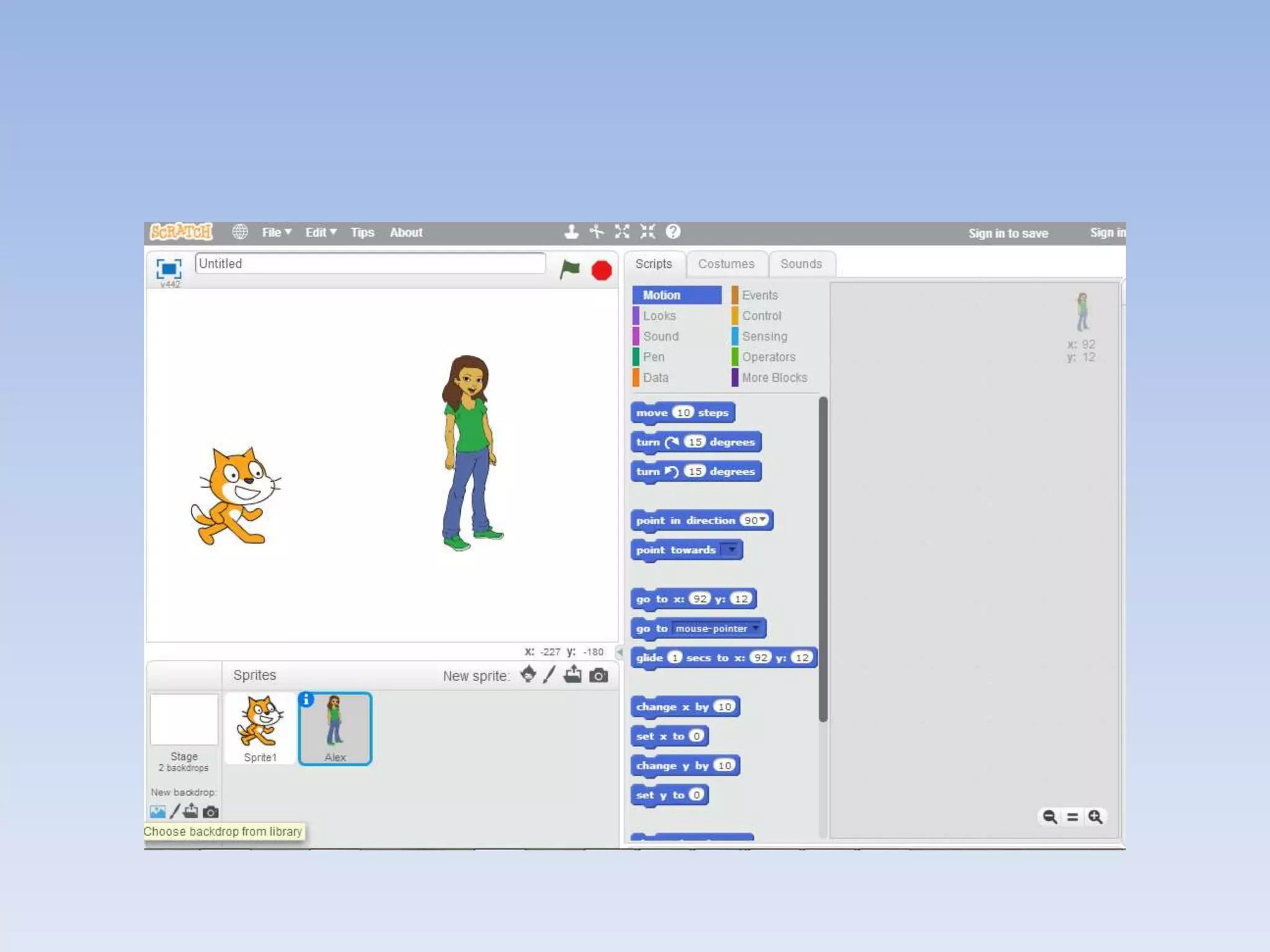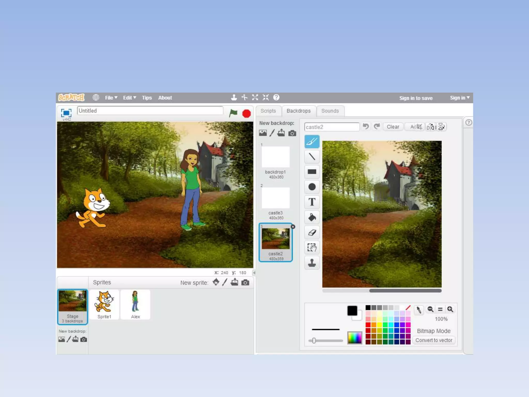 This document provides instructions for adding sprites and backgrounds in a coding program, specifically focusing on using Scratch. It outlines steps to make characters speak, change colors, and execute specific actions like moving and responding to events. Lastly, it includes a challenge to create an interactive program featuring an apple sprite and a cat that performs several tasks.