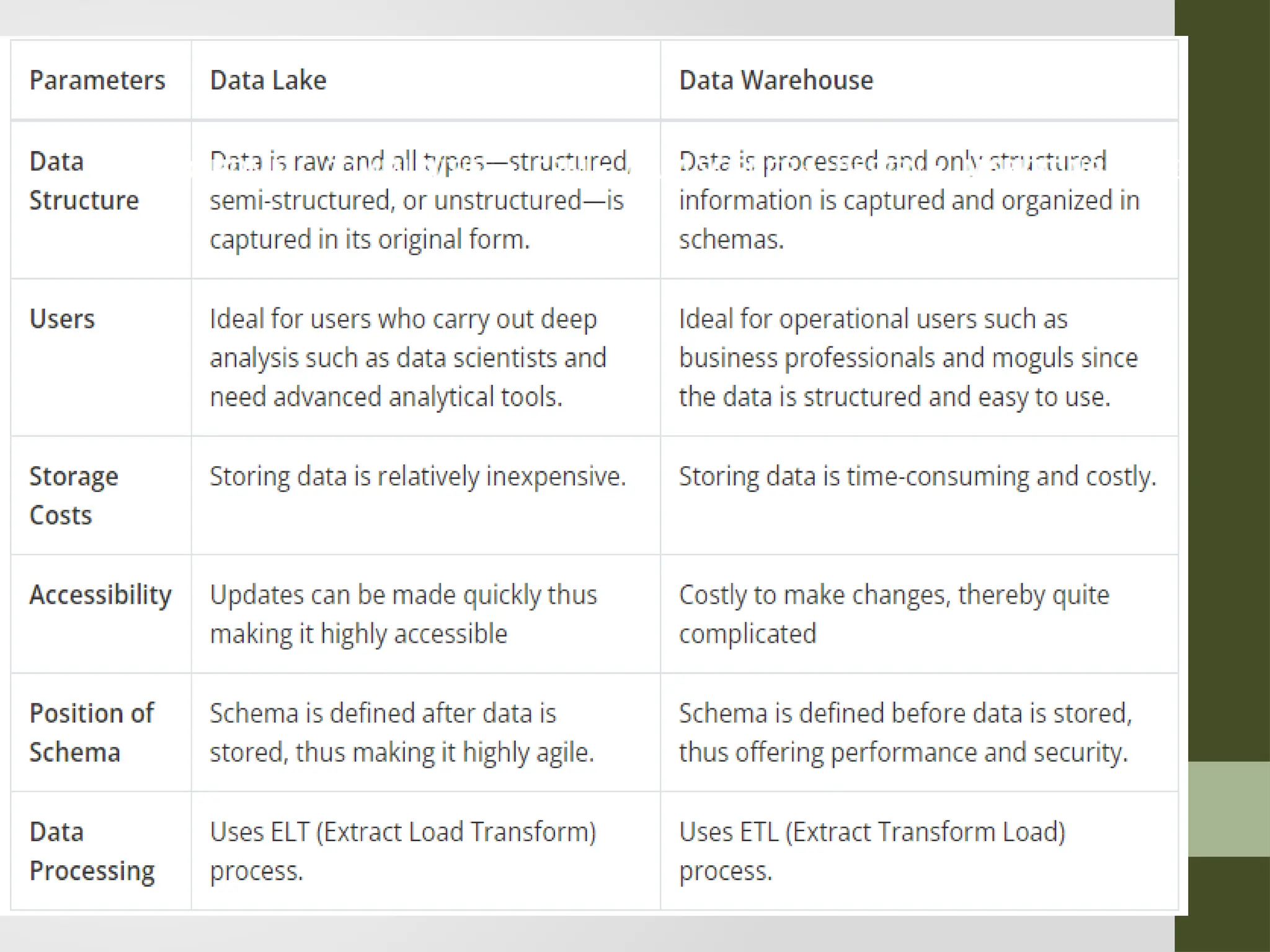 Data Lakes • Datalakes are a fairly new concept and experts have predicted that it might cause the death of data warehouses and data marts. • Although with the increase of unstructured data, data lakes will become quite popular. But you will probably prefer keeping your structured data in a data warehouse.