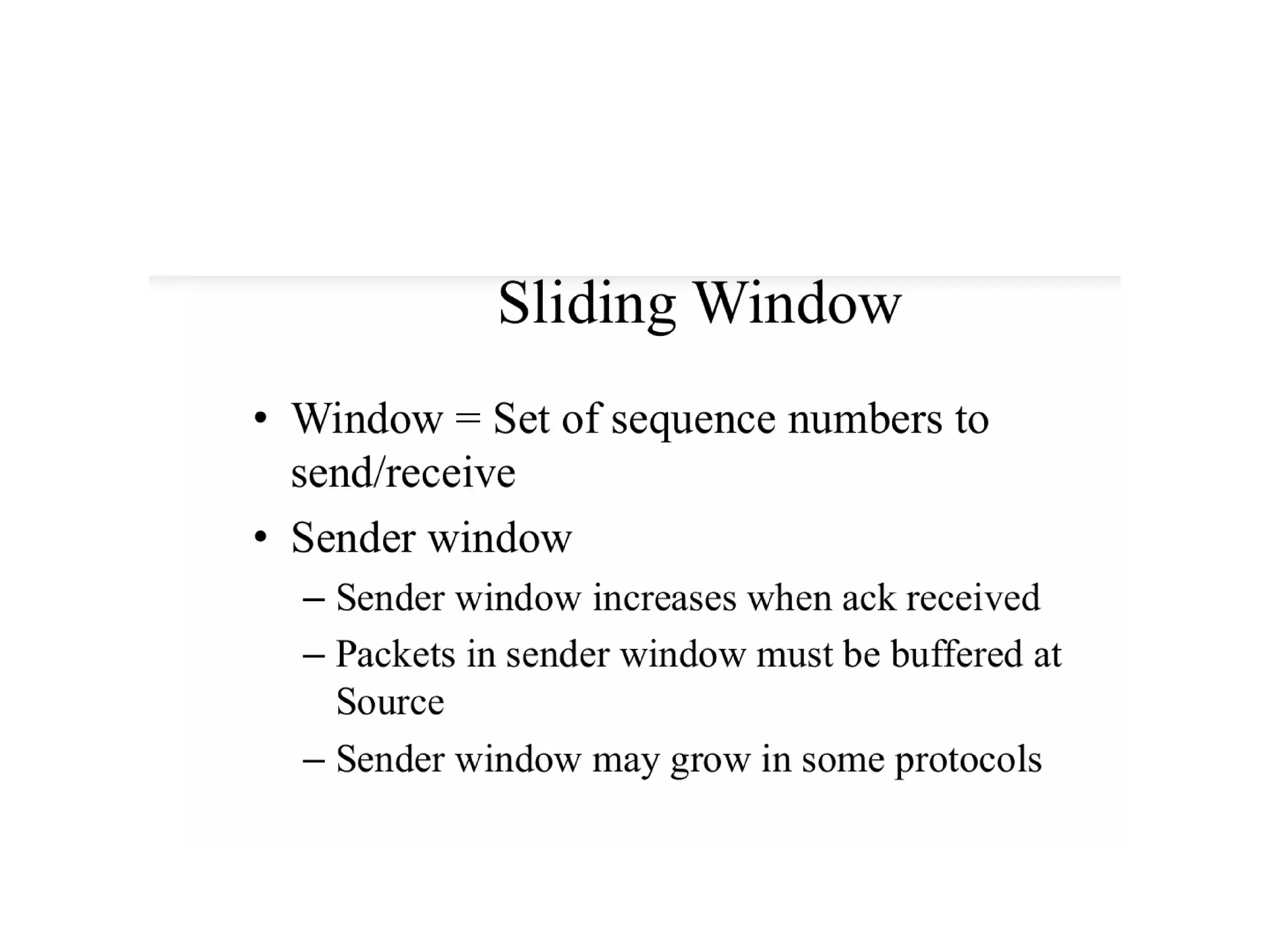 Sliding Window Protocols •SENDER (continued): – Let SWS be the maximum sender window size. – Let LAR be the sequence number of the last acknowledgment received. – Let LFS be the sequence number of the last frame sent. – Therefore LFS - LAR + 1 <= SWS. – The sender must have a buffer large enough to hold as many frames as there are in its window. – sender records the time at which every packet is sent