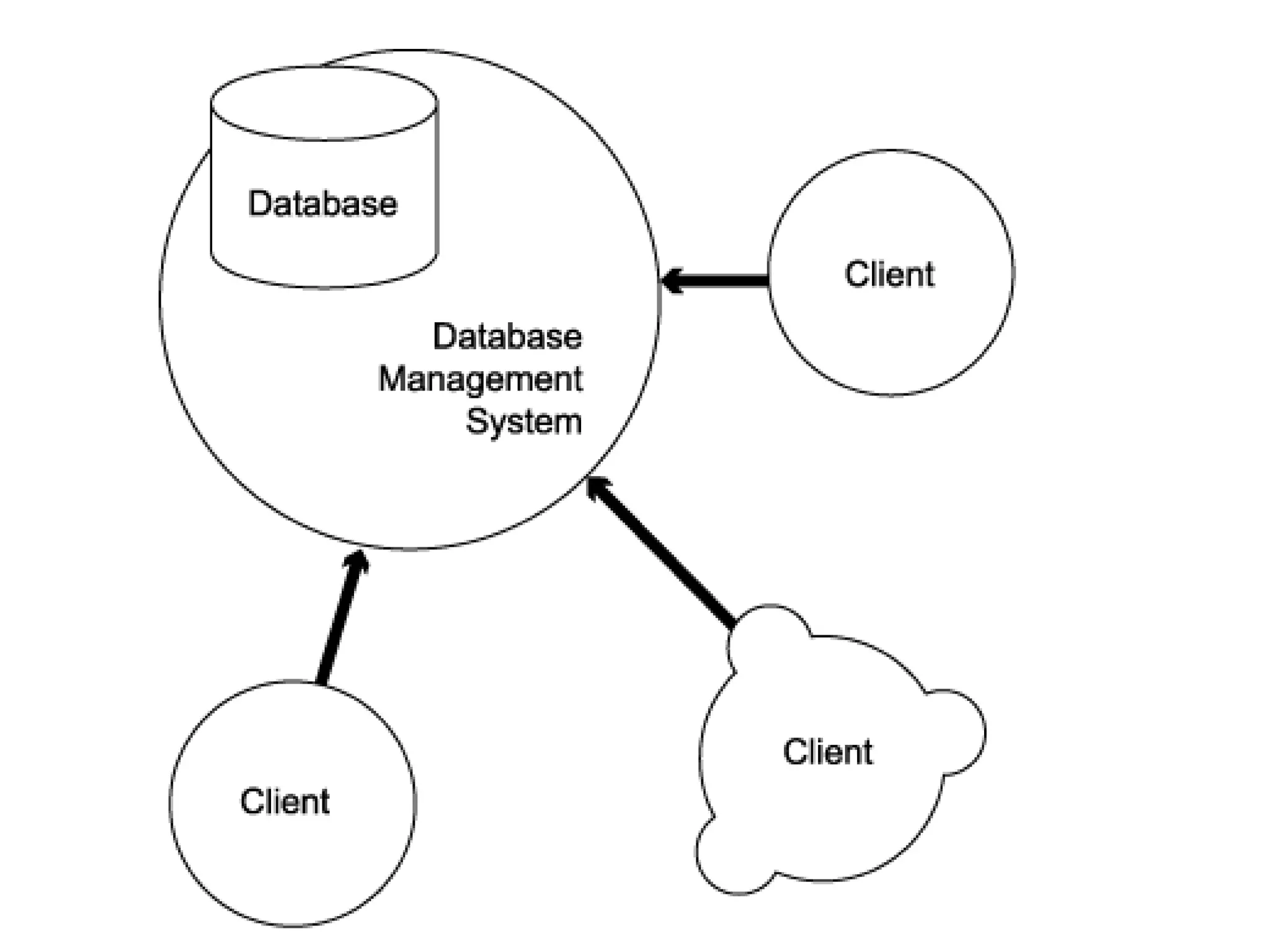 Database Server The databaseserver accepts queries from clients, processes them concurrently, and returns results. There are a number of different query languages around, by far the most prevalent of which is SQL