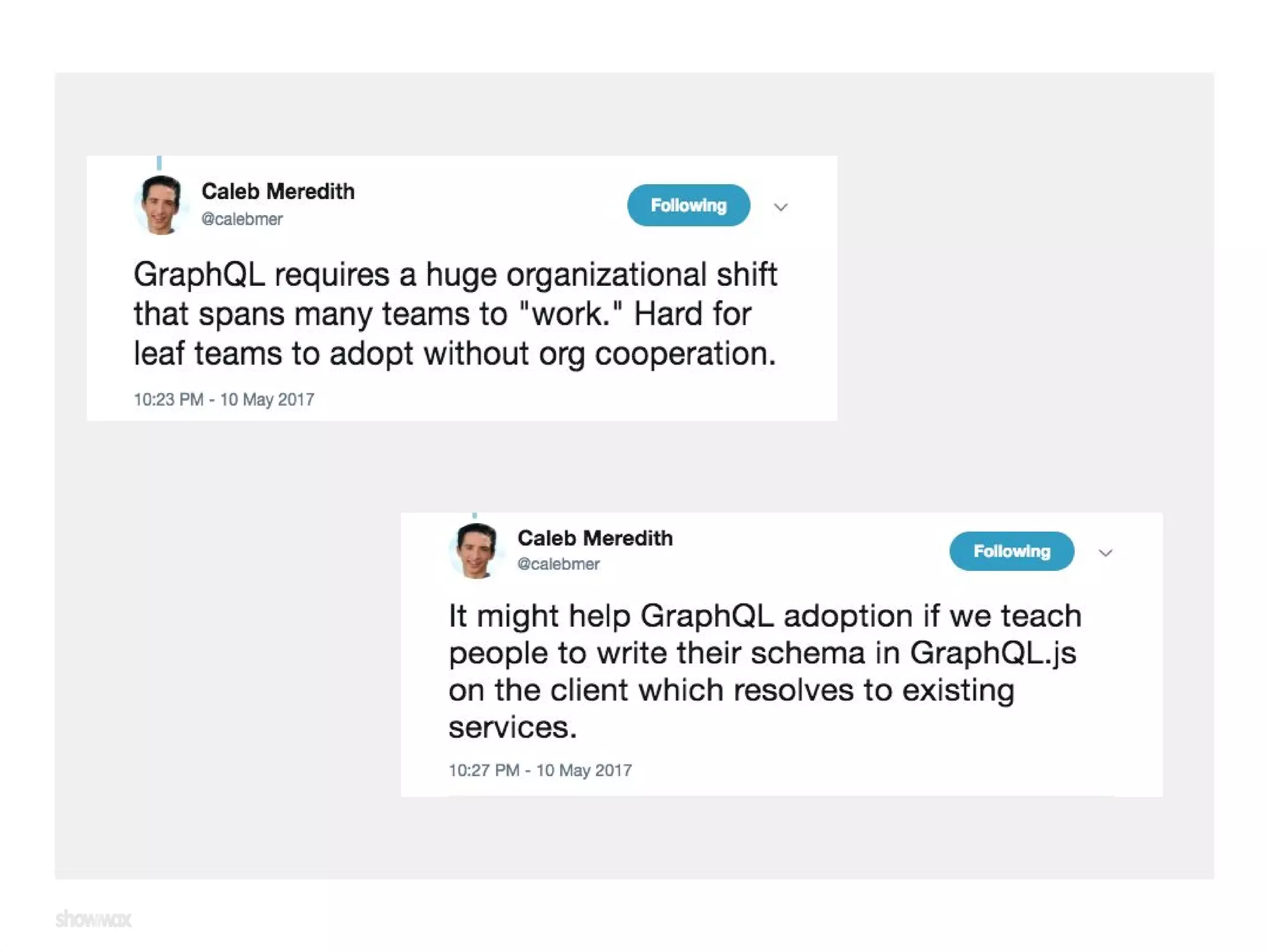 The document discusses the implementation of GraphQL without a backend, highlighting benefits such as co-location of components and data needs, quicker feature development, and easier server-side rendering. It emphasizes a transition from RESTful APIs to a standalone GraphQL server, along with client-side enhancements through libraries like Apollo. Additional resources, tutorials, and examples are provided for further exploration of GraphQL adoption.