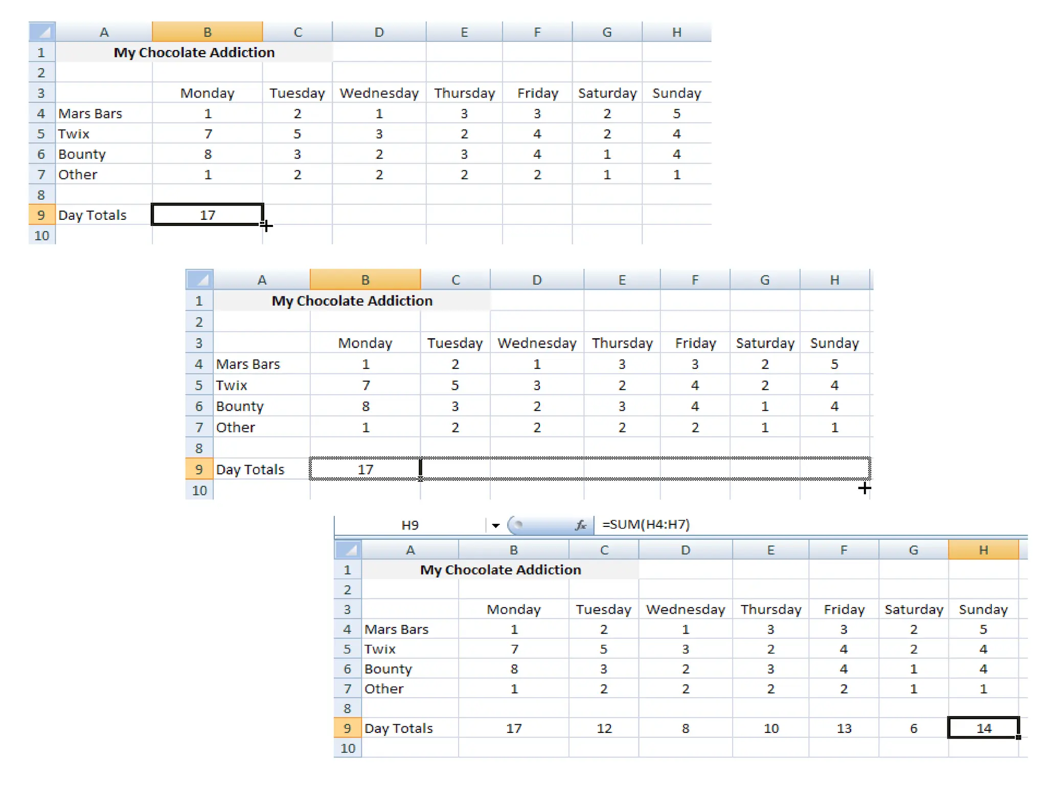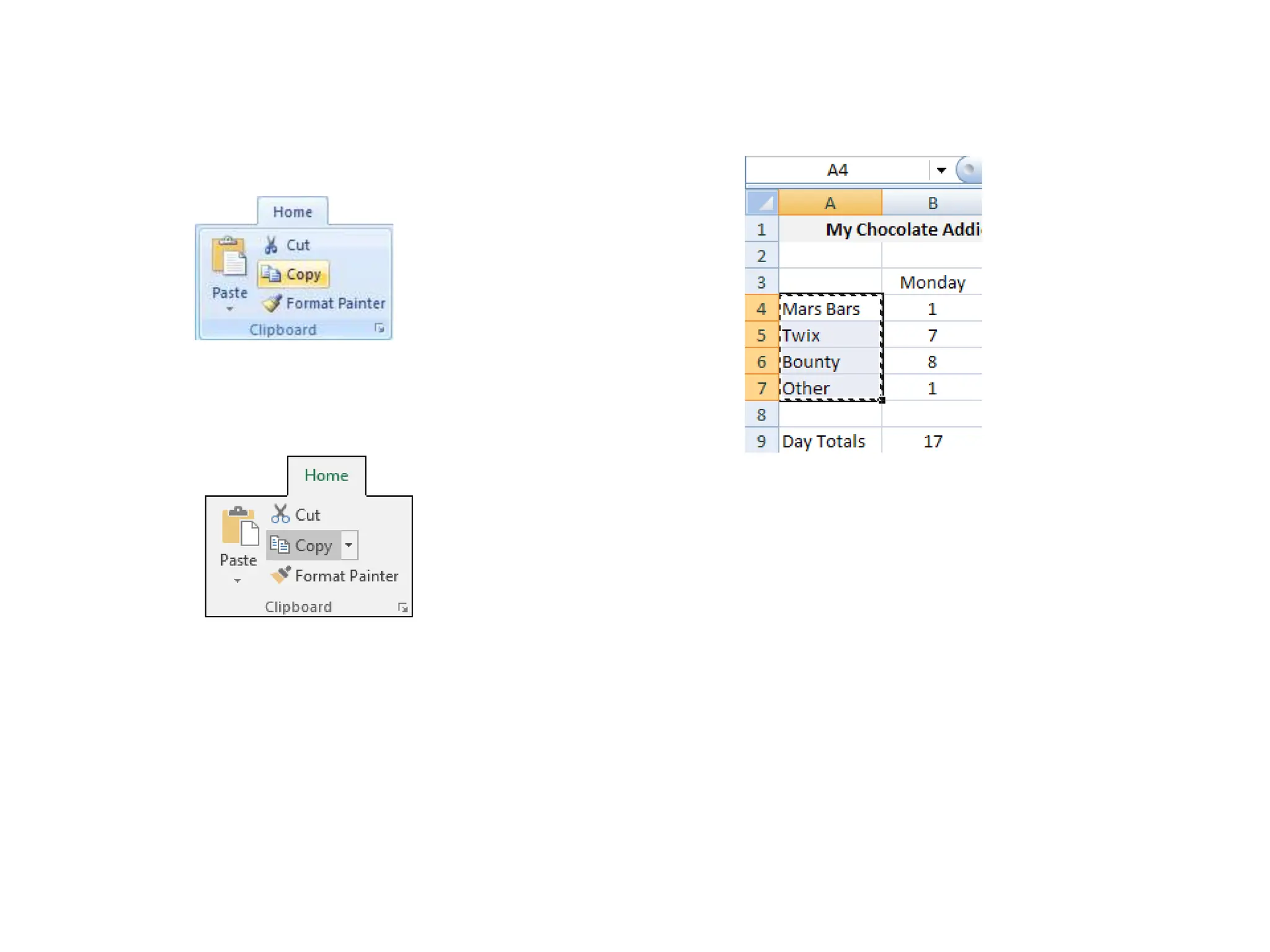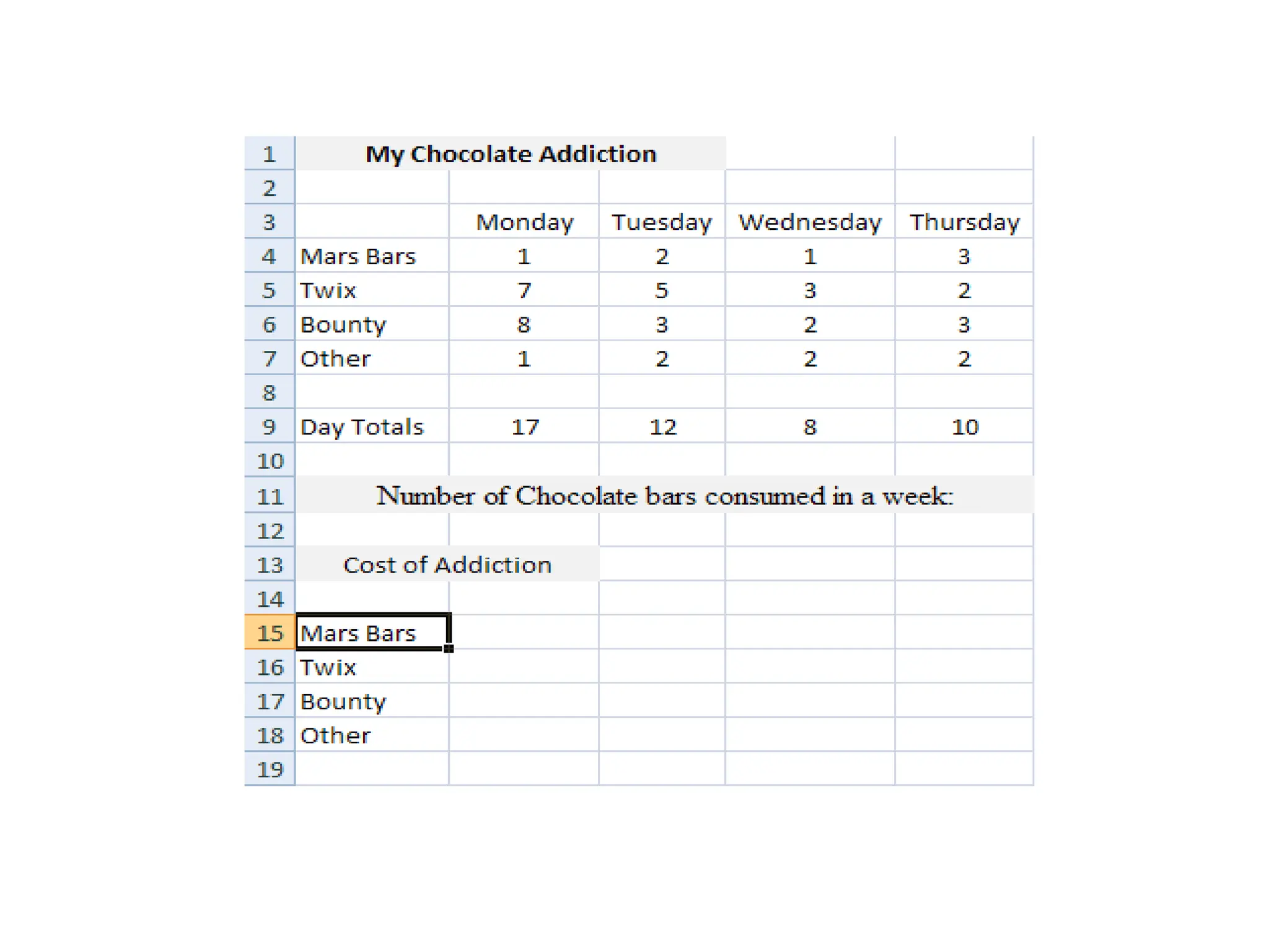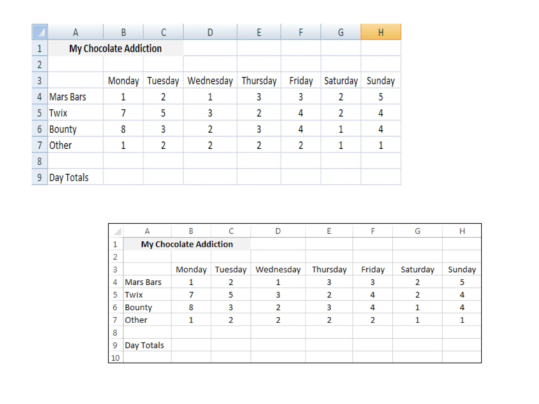 The document serves as an introductory guide to Excel for beginners, covering the layouts of Excel 2007 and 2016, including the ribbon and file menu access. It provides step-by-step exercises on inputting data into cells, merging cells, and includes sample data entries for practice. The content is primarily instructional, aimed at helping users familiarize themselves with basic Excel functionalities.