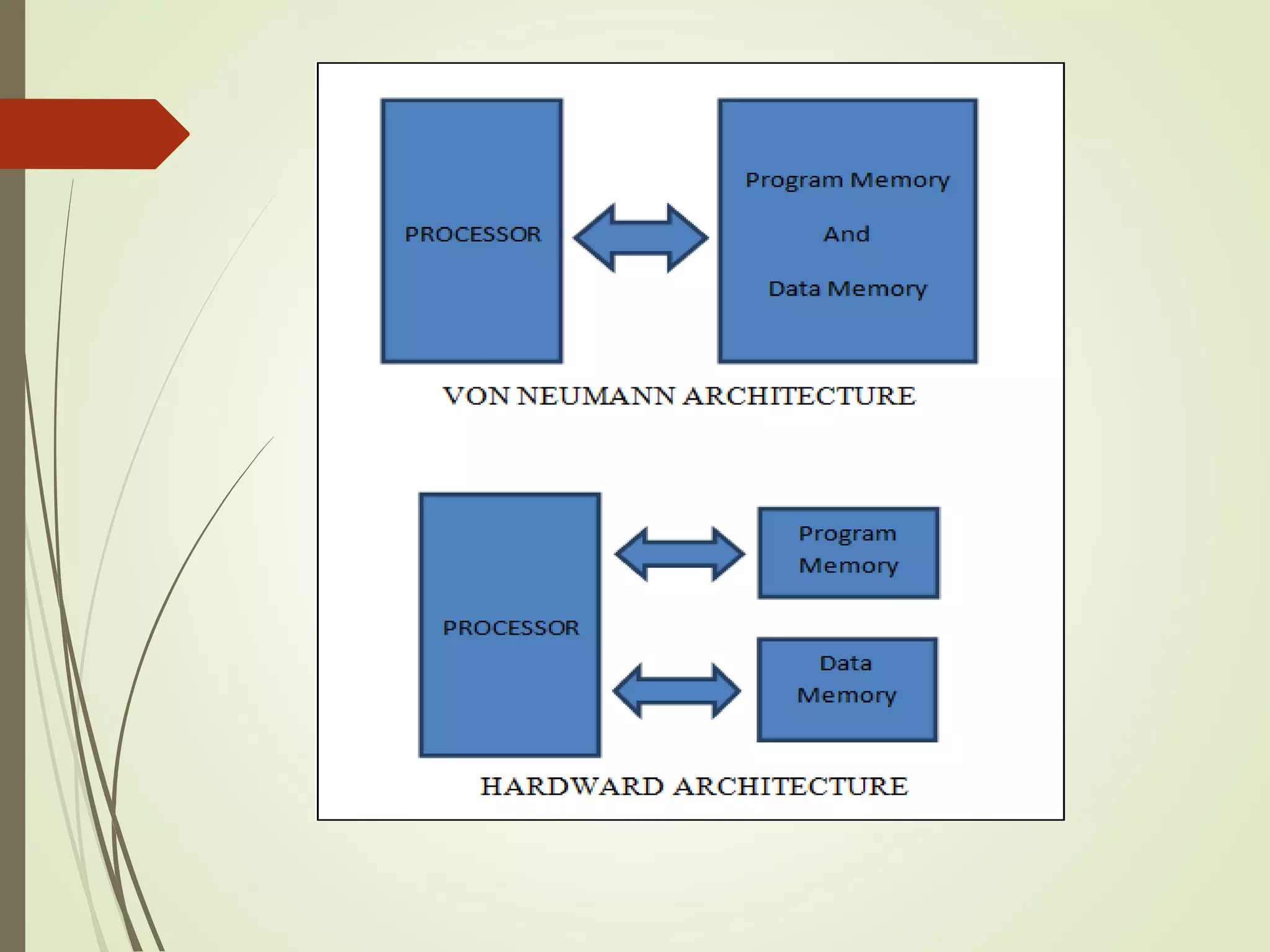 Earlier microprocessorsmade use of Von Neumann architecture where the data and instructions (programs) are stored in the same memory. Even though this architecture is simple, there are many draw backs. One of the major drawbacks is that instruction and data cannot be accessed at the same time as they share a single data bus. This often degrades the overall performance of the device. Later, Harvard architecture is introduced which makes use of separate program and data memories with separate buses so that both data and instructions can be accessed at the same time. Later Modified Harvard Architecture is developed in which the program memory is accessed as if it were data memory.