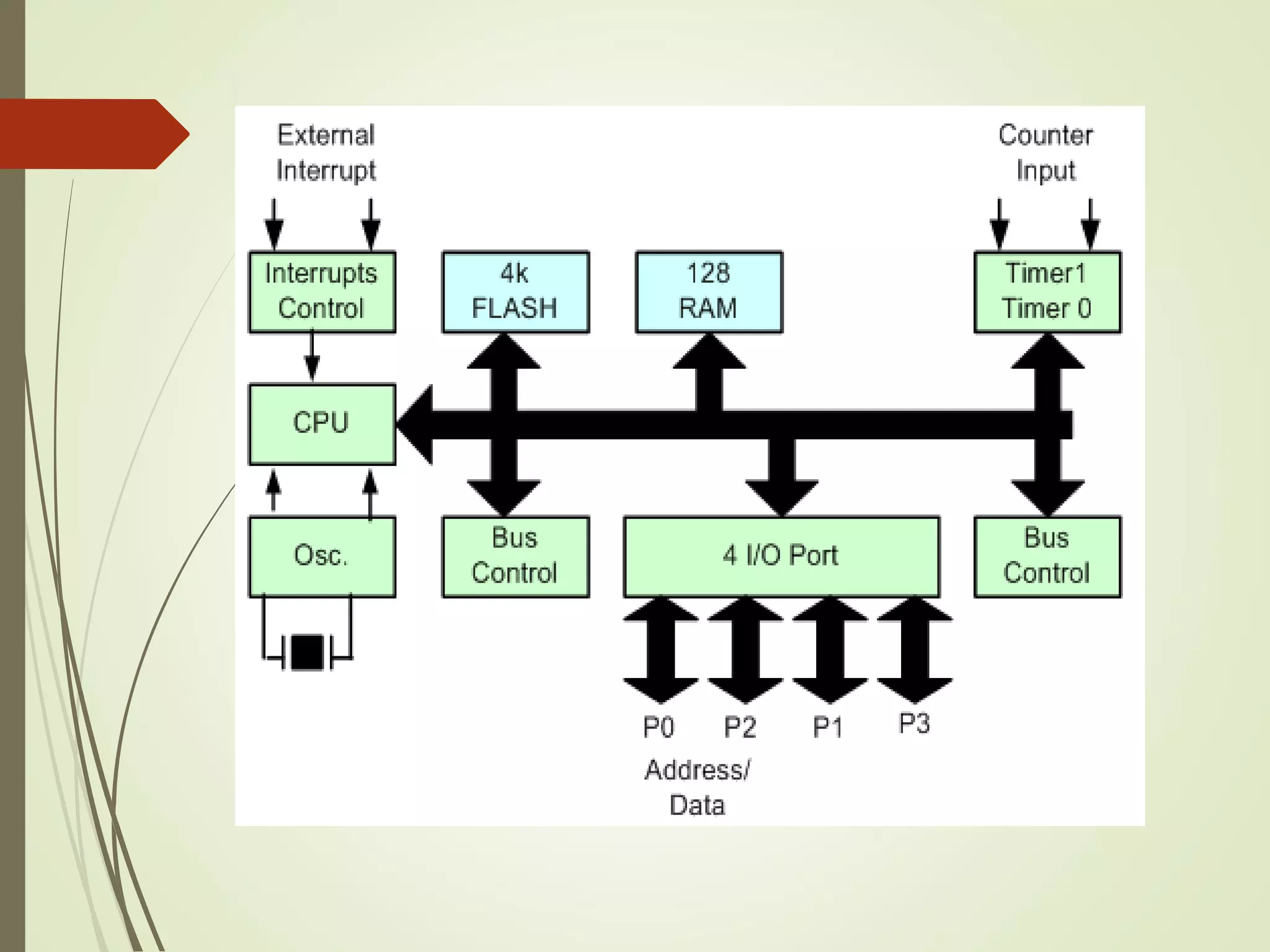 Microcontroller The mainreason for the development of microcontroller is to overcome the only drawback of the microprocessor. Even though microprocessors are powerful devices, they require external chips like RAM, ROM, Input / Output ports and other components in order to design a complete working system. This made it economically difficult to develop computerized consumer appliances on a large scale as the system cost is very high. Microcontrollers are the devices that actually fit the profile “Computer – on – a chip” as it consists of a main processing unit or processor along with some other components that are necessary to make it a complete computer. The components that are present on a typical microcontroller IC are CPU, memory, input / output ports and timers. The first microcontroller was developed in 1971 by Texas Instruments and is called TMS 1000. It was made available for commercial use in 1974. The block diagram of a microcontroller is shown below.