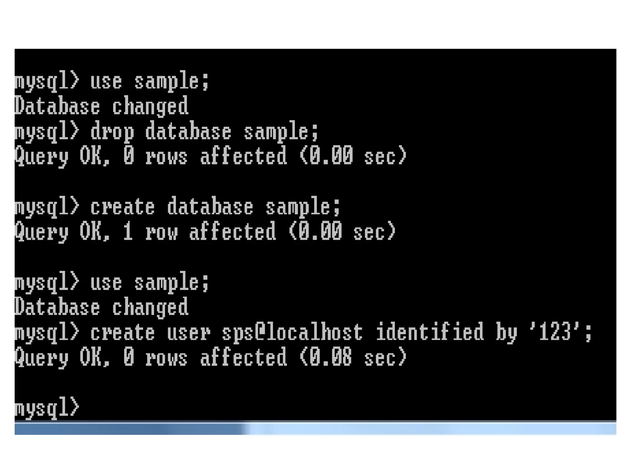This document provides instructions for creating and managing MySQL databases. It describes how to create a database, display existing databases, select a database to work with, remove databases, create user accounts, grant privileges to users, connect to the MySQL server using a user account, reset passwords, and revoke privileges from users. Key steps include using SQL statements like CREATE DATABASE, SHOW DATABASES, USE, DROP DATABASE, CREATE USER, GRANT, and REVOKE.