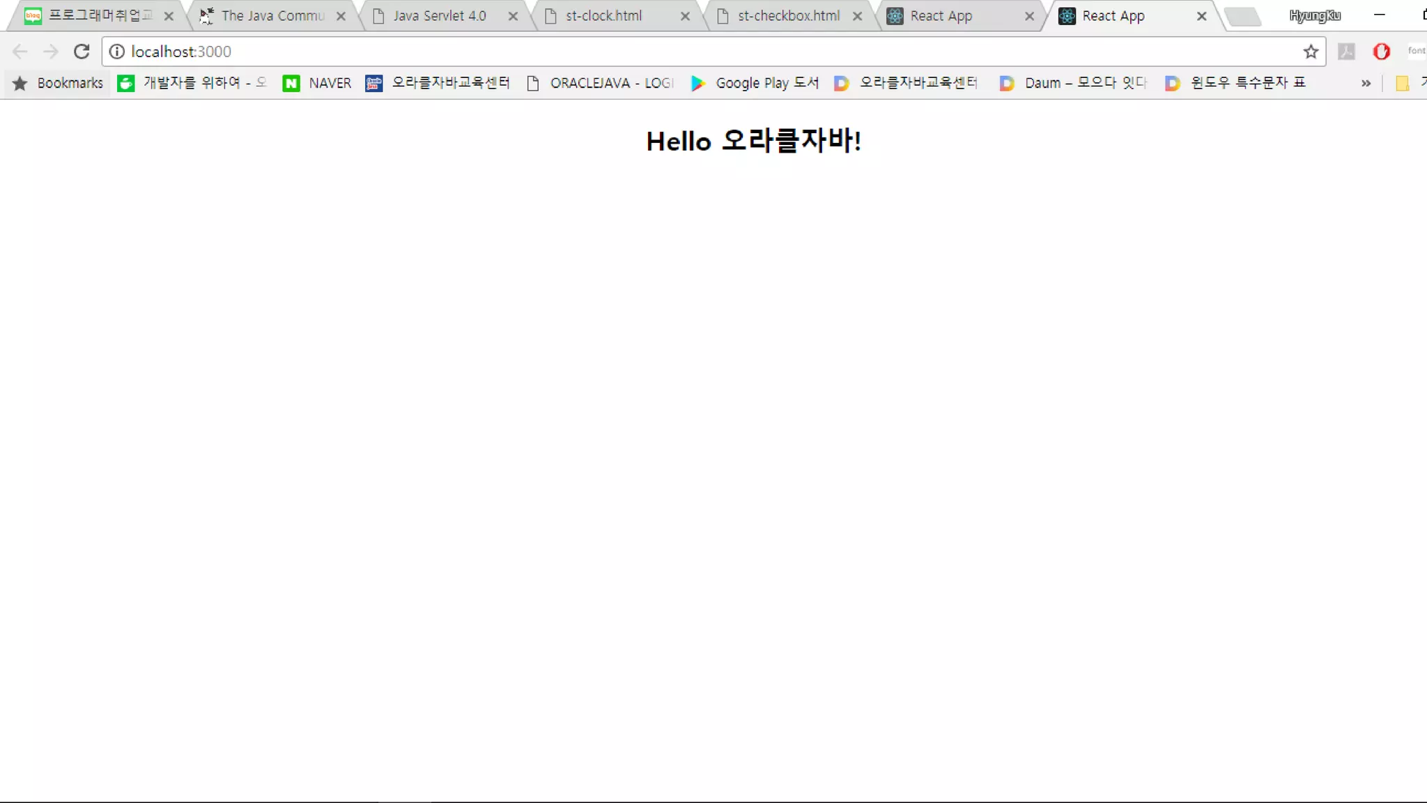 Jsx 임베딩 // 변수의선언 --- (※1) const item = "SD카드" const value = 12000 // HTML태그안에 변수값을 입력 --- (※2) const msg = <h1>{item} – {value}원</h1> // render()함수로 그림 --- (※3) const elm = document.getElementById("root") ReactDOM.render(msg, elm)