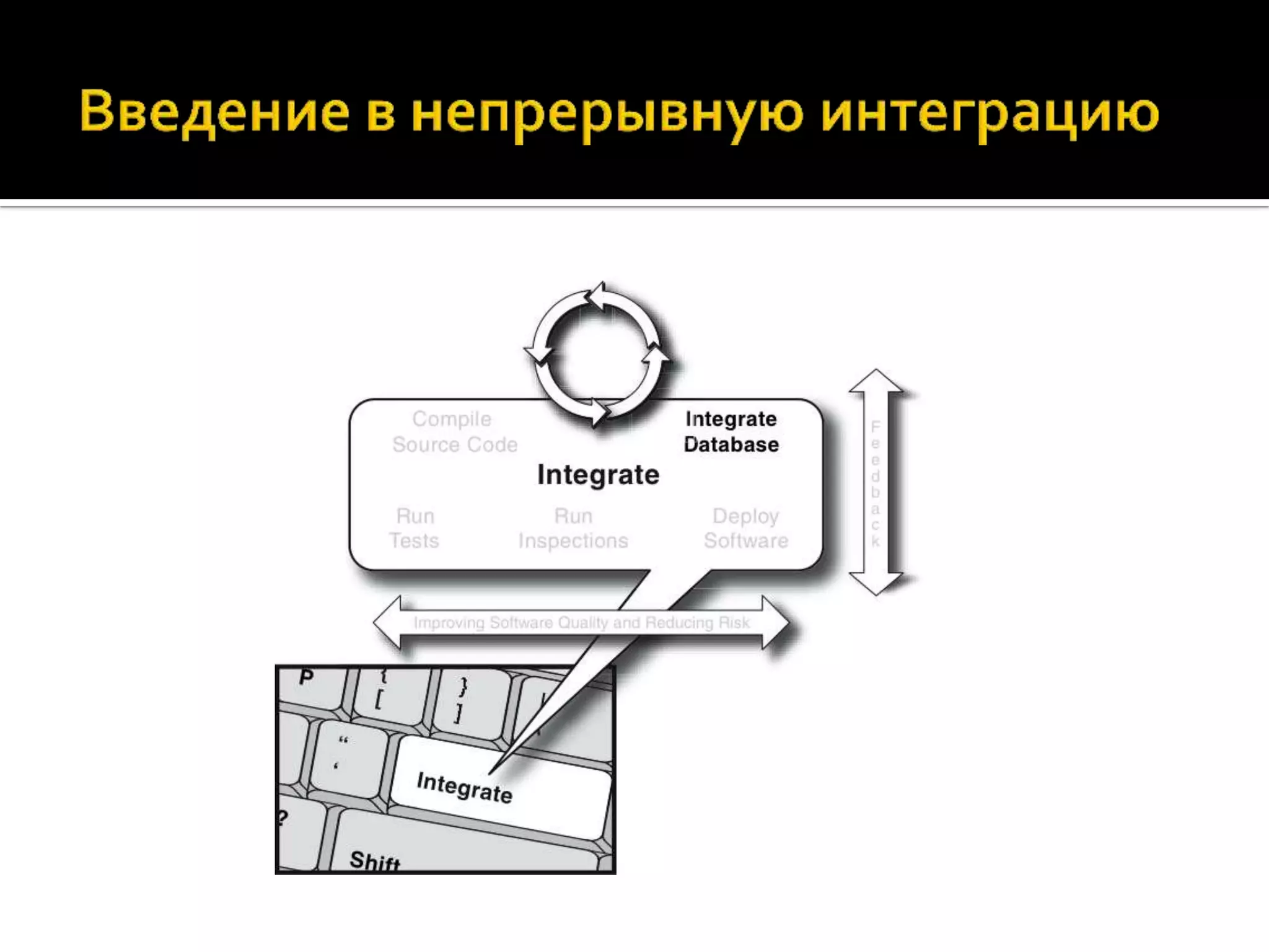 Документ посвящен внедрению непрерывной интеграции для проектов на PHP, описывая основные методы и инструменты, такие как Jenkins и другие системы автоматизации. Он акцентирует внимание на важности стандартизации кодирования, тестирования и оптимизации процессов для повышения доверия к программному обеспечению. Также обсуждаются риски и сложности, связанные с интеграцией, а также необходимость культуры командной работы.