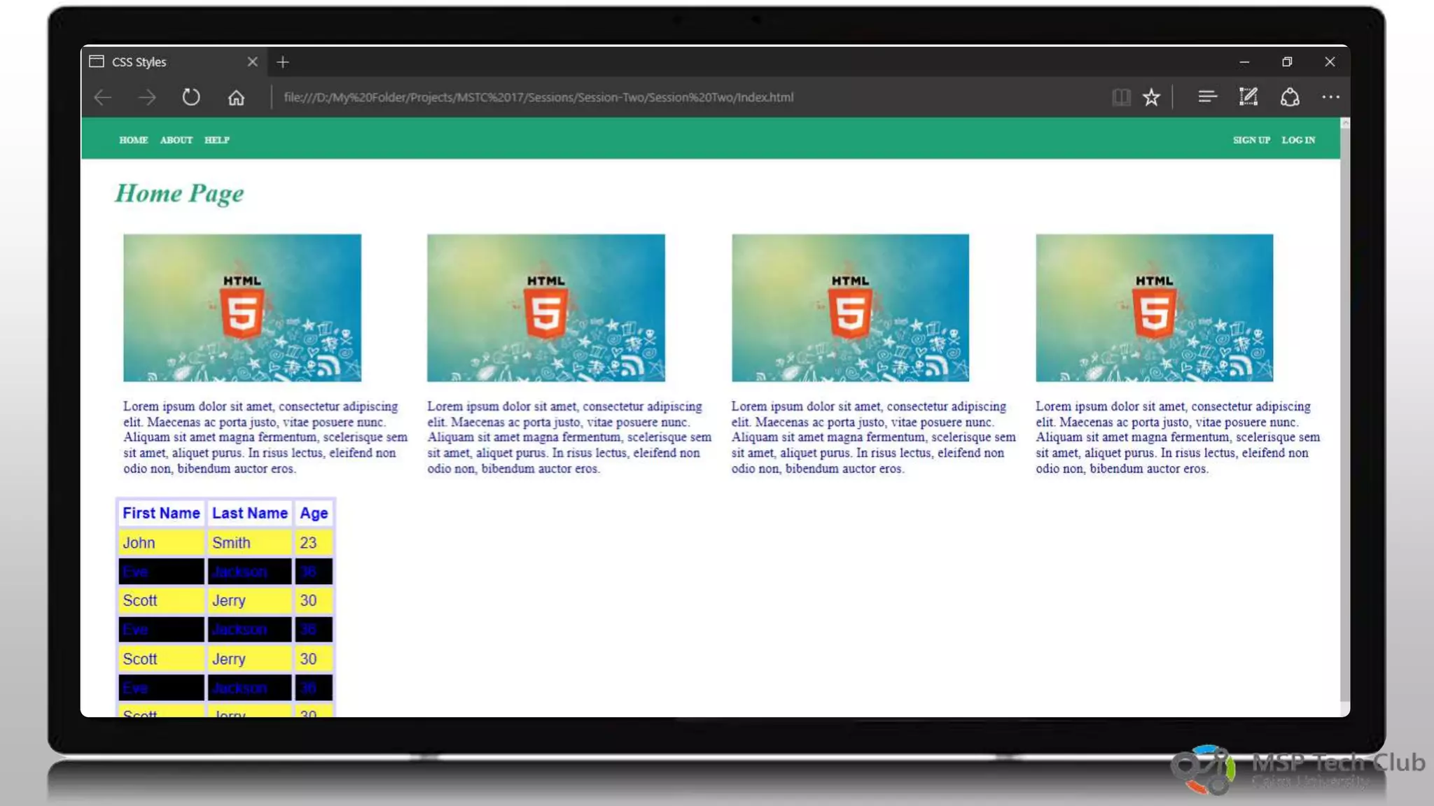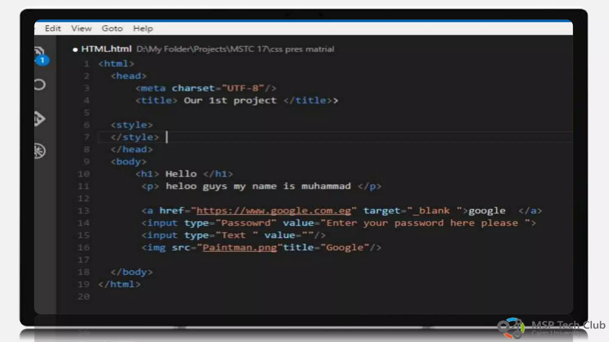 The document is a presentation on CSS, prepared by Mustafa Saeed and Muhammad Hesham, which includes basic concepts of CSS syntax, properties, and different types of CSS coding (internal, external, and inline). It demonstrates the use of CSS selectors and properties with examples. Contact information for further inquiries is also provided at the end.