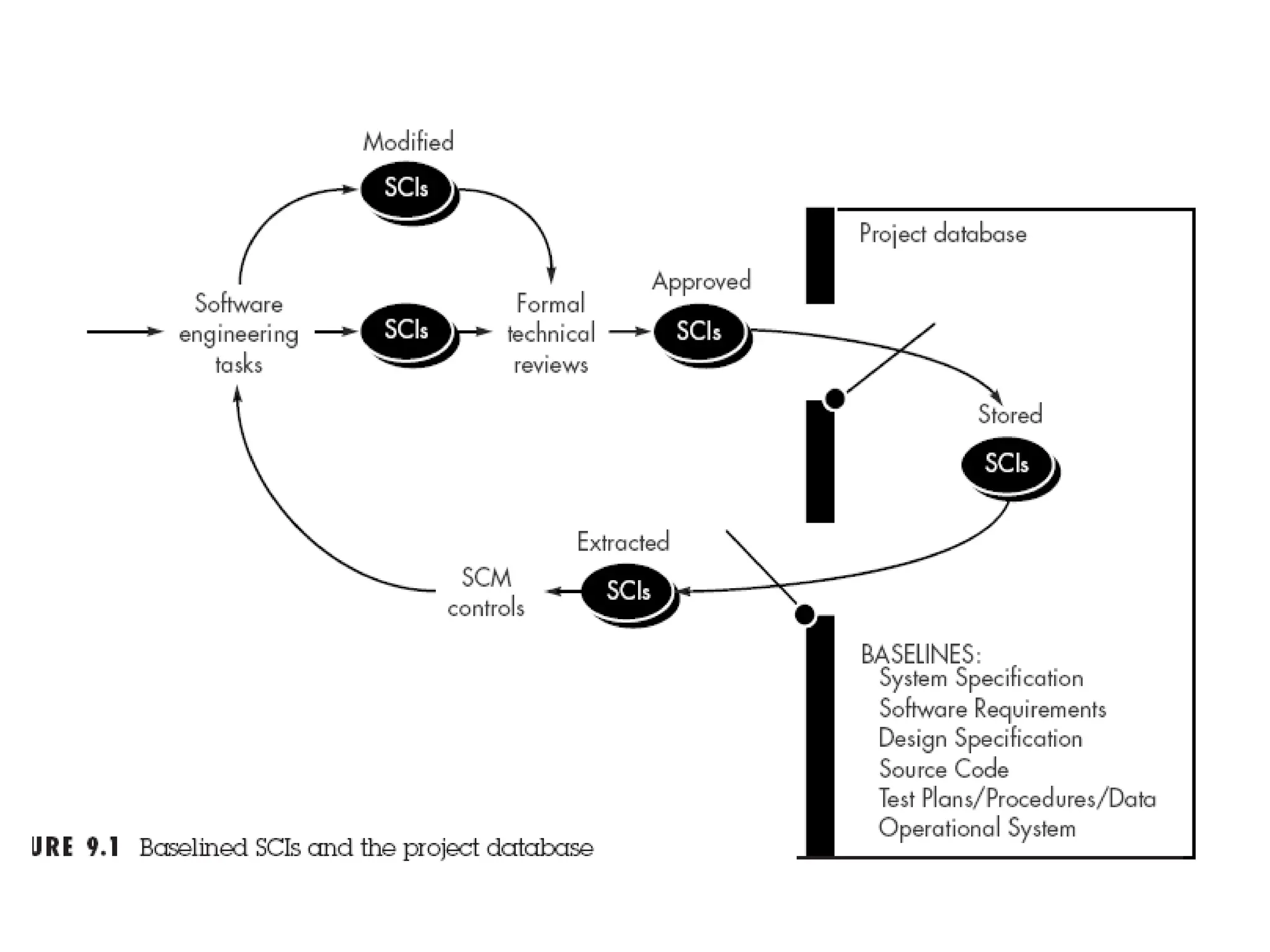 Five SCM tasks •Identification (tracking multiple versions to enable efficient changes) • Version control (control changes before and after release to customer) • Change control (authority to approve and prioritize changes) • Configuration auditing (ensure changes made properly) • Reporting (tell others about changes made)