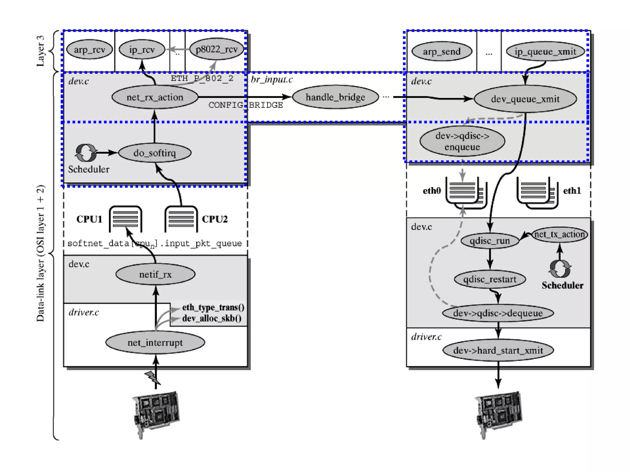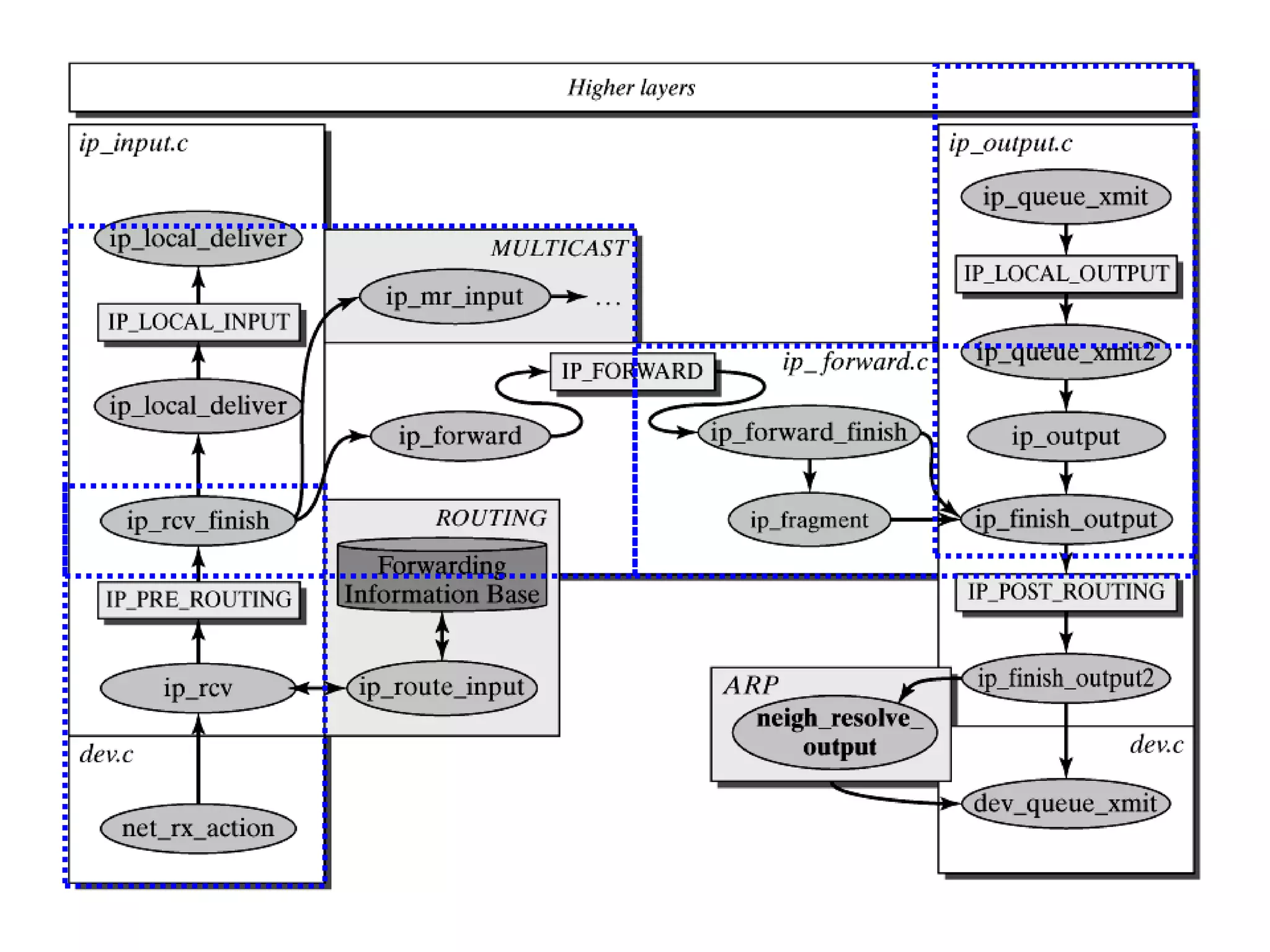 The document discusses Linux networking architecture and covers several key topics in 3 paragraphs or less: It first describes the basic structure and layers of the Linux networking stack including the network device interface, network layer protocols like IP, transport layer, and sockets. It then discusses how network packets are managed in Linux through the use of socket buffers and associated functions. The document also provides an overview of the data link layer and protocols like Ethernet, PPP, and how they are implemented in Linux.