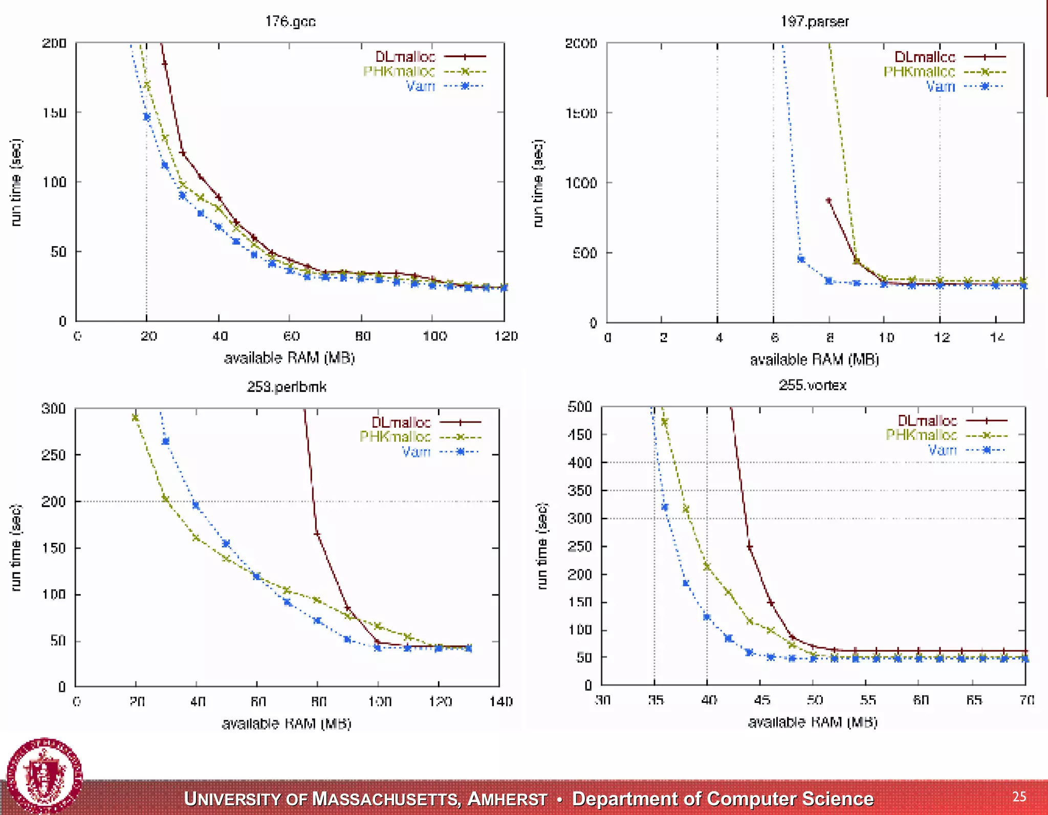 The document presents VAM, a dynamic memory allocator designed to enhance memory performance by reducing fragmentation and improving spatial locality of heap objects. VAM utilizes a page-based design with fine-grained size classes and eliminates object headers for small objects to optimize cache and page-level performance. Experimental evaluations demonstrate that VAM outperforms existing allocators in both ample and constrained memory environments, with a focus on real-world application performance.