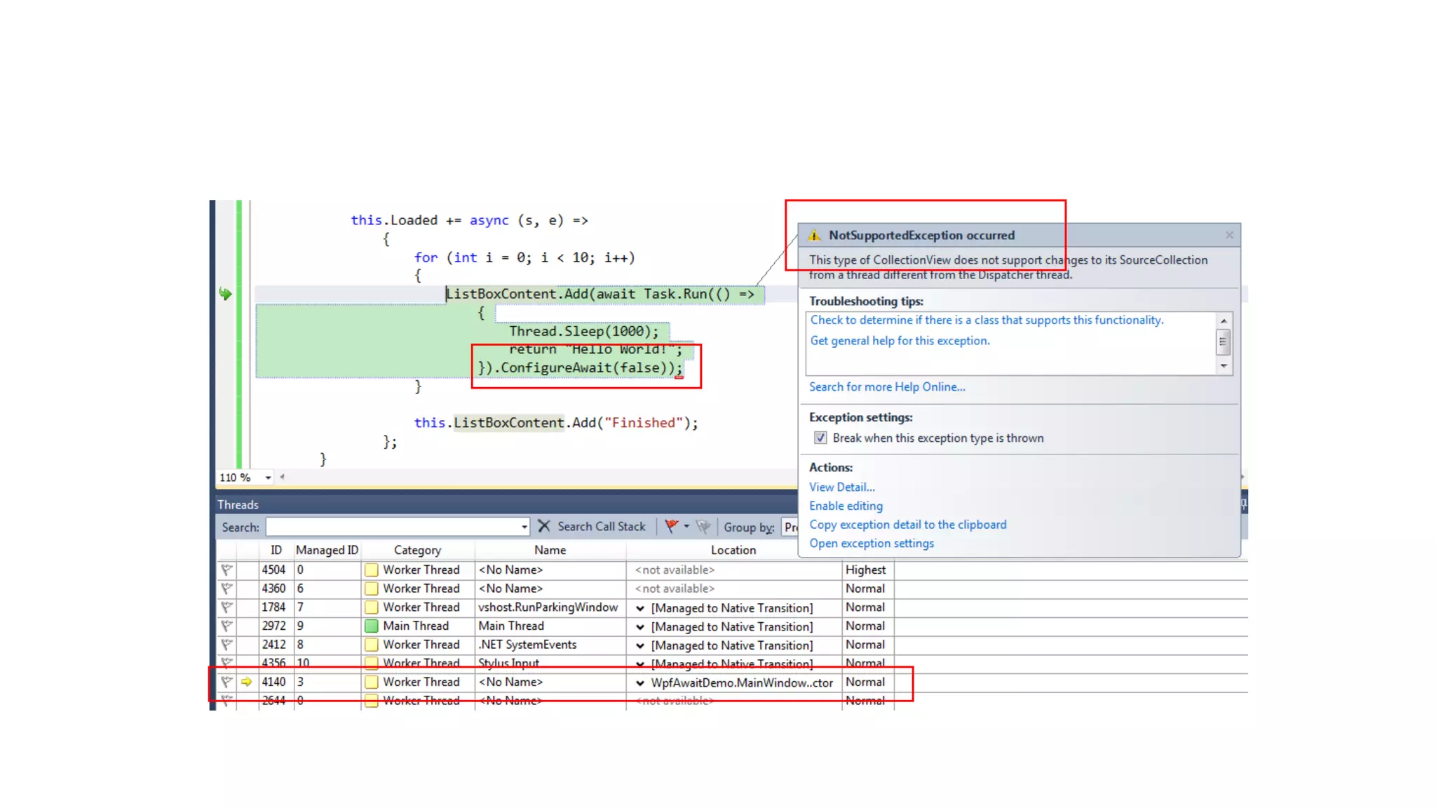 The document is a workshop presentation by Rainer Stropek on asynchronous programming in C# and .NET 4.5, discussing various patterns such as the IAsyncResult pattern and async/await guidelines. It includes code examples demonstrating synchronous and asynchronous methods for downloading text, handling cancellation, and reporting progress. Additionally, it promotes a time tracking solution, TimeCockpit, aimed at knowledge workers in IT consulting.