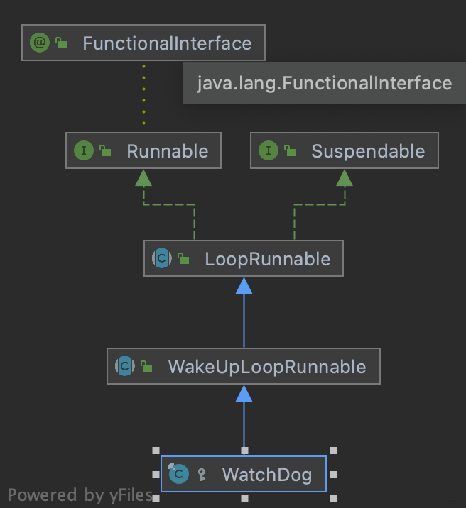 public static <T> T pollUninterruptibly(BlockingQueue<T> queue, long wait, TimeUnit unit) { try { // 从队列中取出 return queue.poll(wait, unit); } catch (InterruptedException ignored) { ....... } return null; } 我们继续向下分析WakeUpLoopRunnable的父类LoopRunnable。它实现了Runnable接口,并重写了 run 方法。